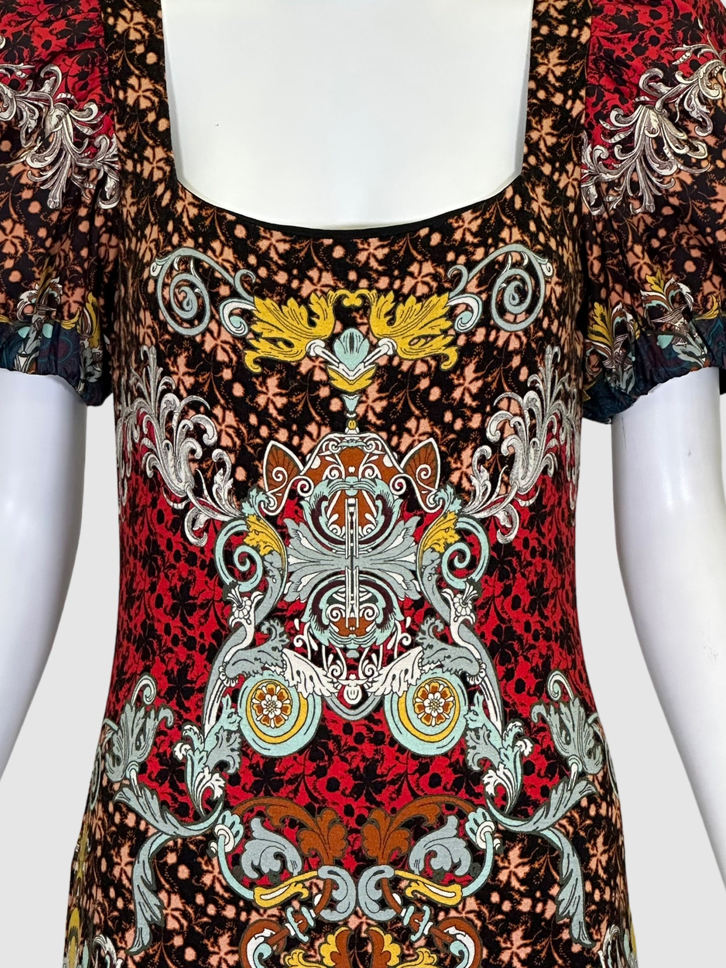 Alice + Olivia Printed Puff-sleeve Midi Dress, Size 10.