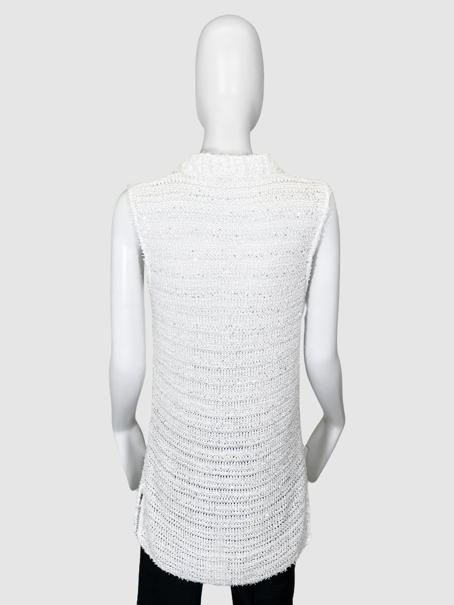 Amina Rubinacci White Long Knit Vest with Sequins, One Size.
