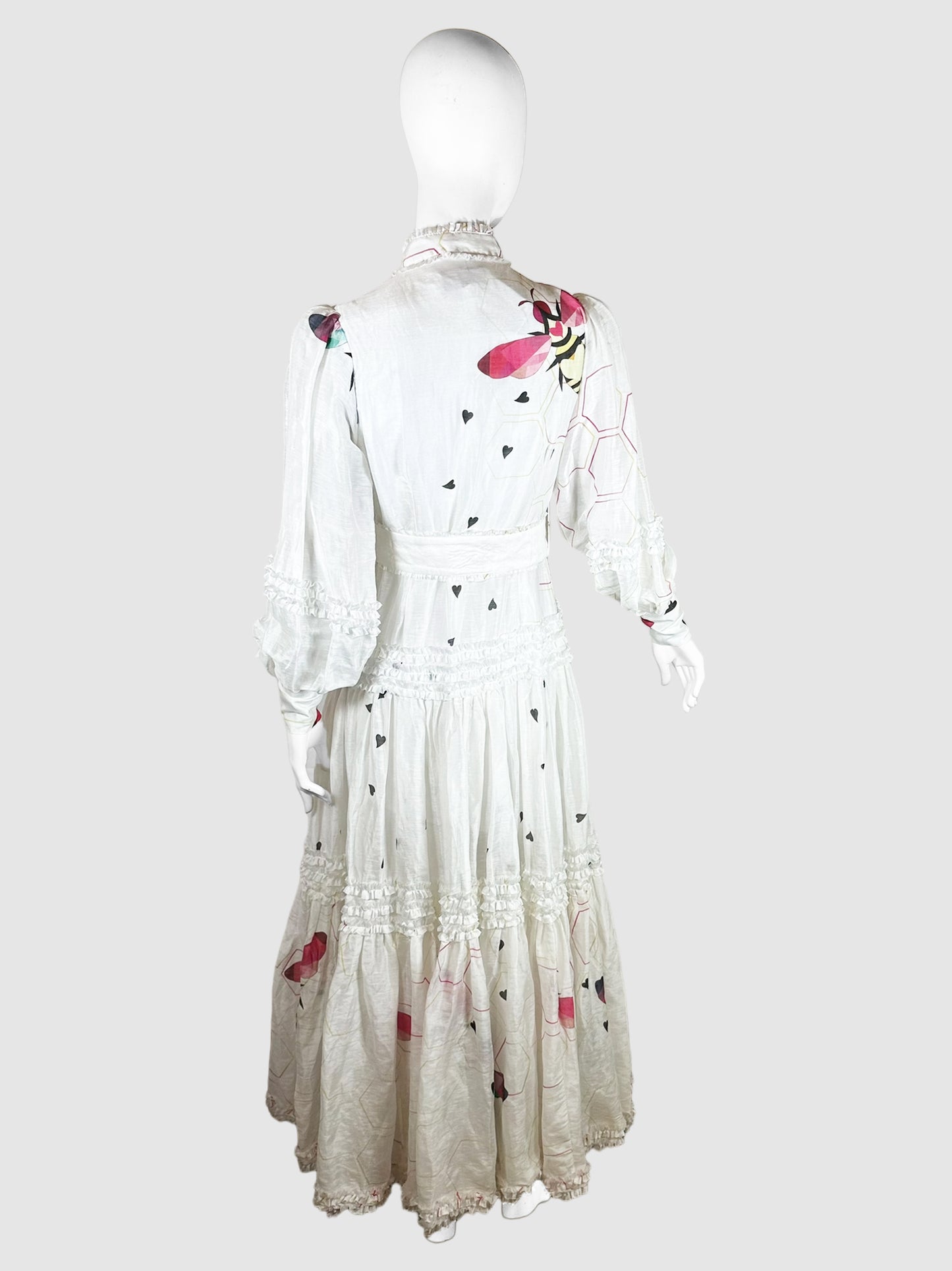 Bee Print Ruffled Maxi Dress - Size 4