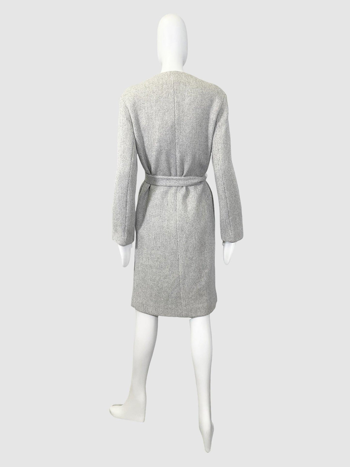 Boss Light Grey Wool Blend Wrap Coat, Size 0.