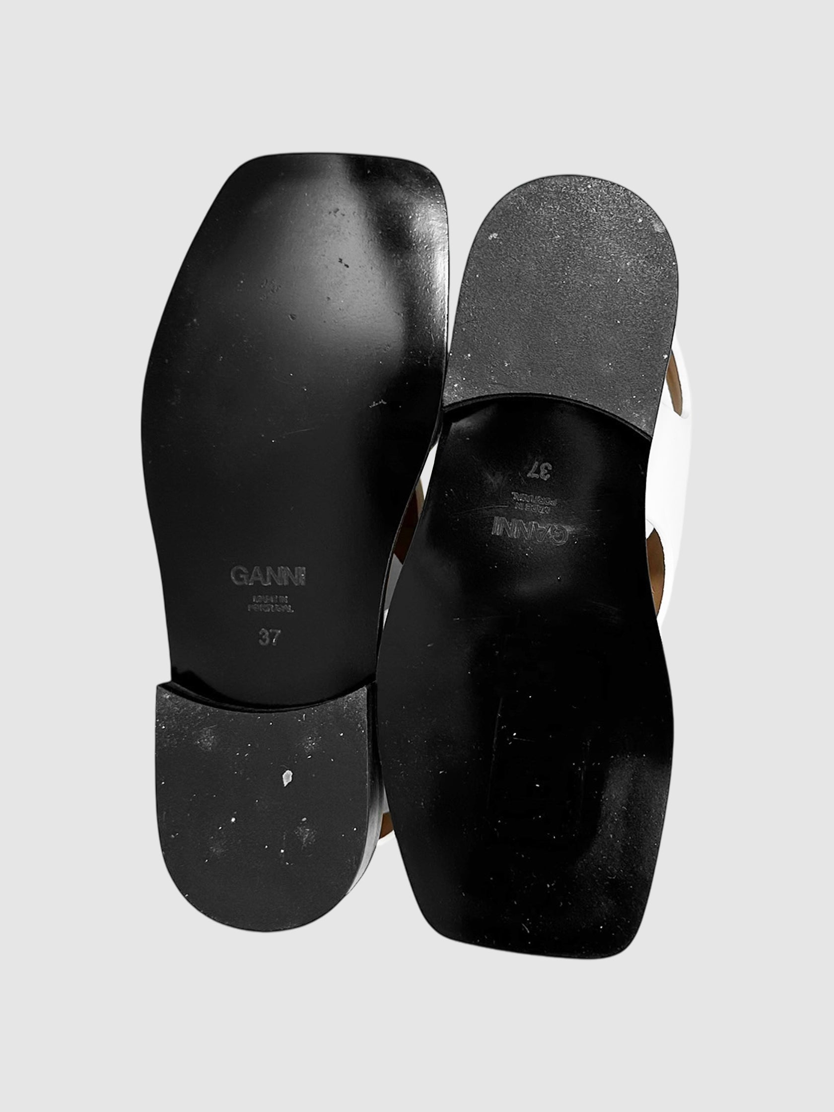 GANNI White Leather Buckled Cross Strap Sandals - Size EU 37.