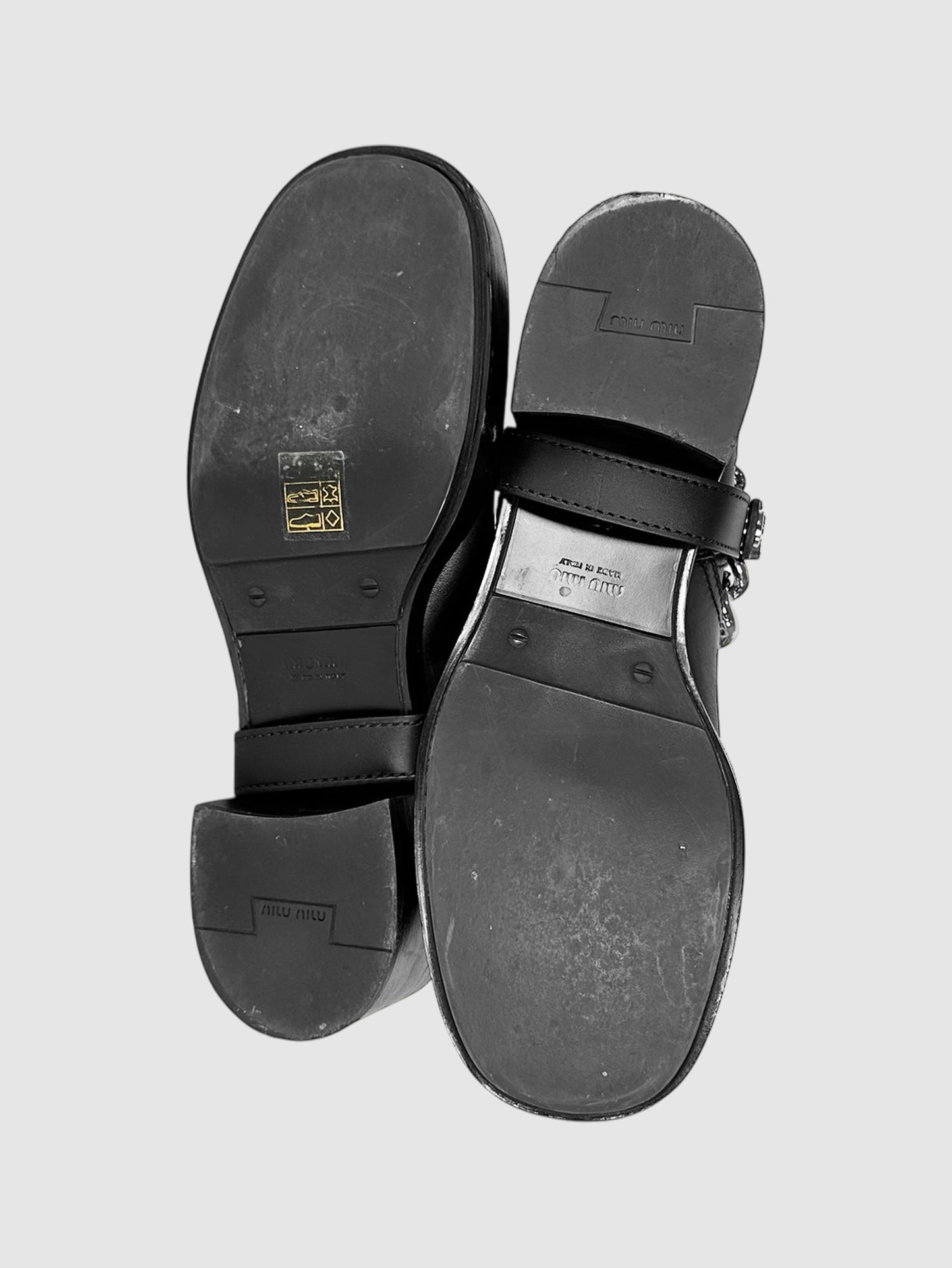 Miu Miu Black Leather Chainlink Moto Riding Boots - Size 37.