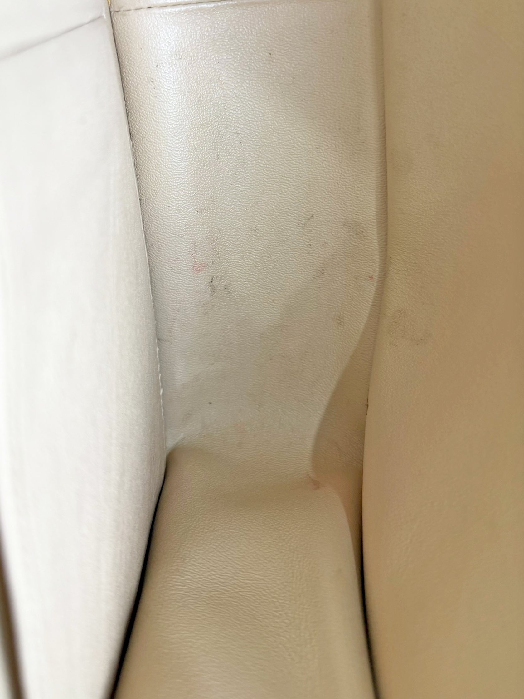 Good Condition! Some discolouration to back and inside of bag, and warping of leather on front, as shown in last photos.