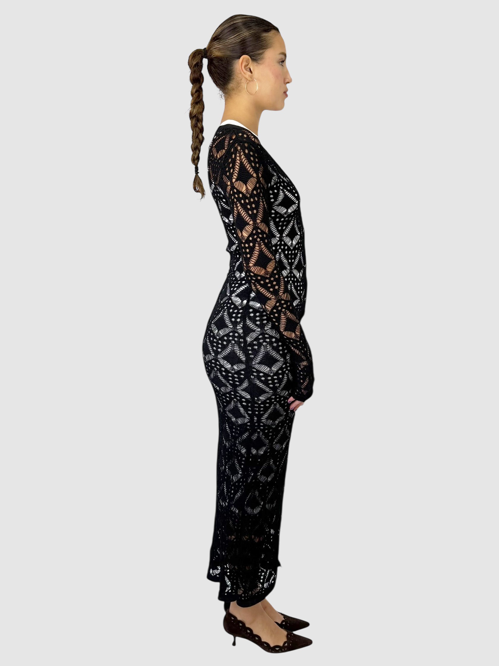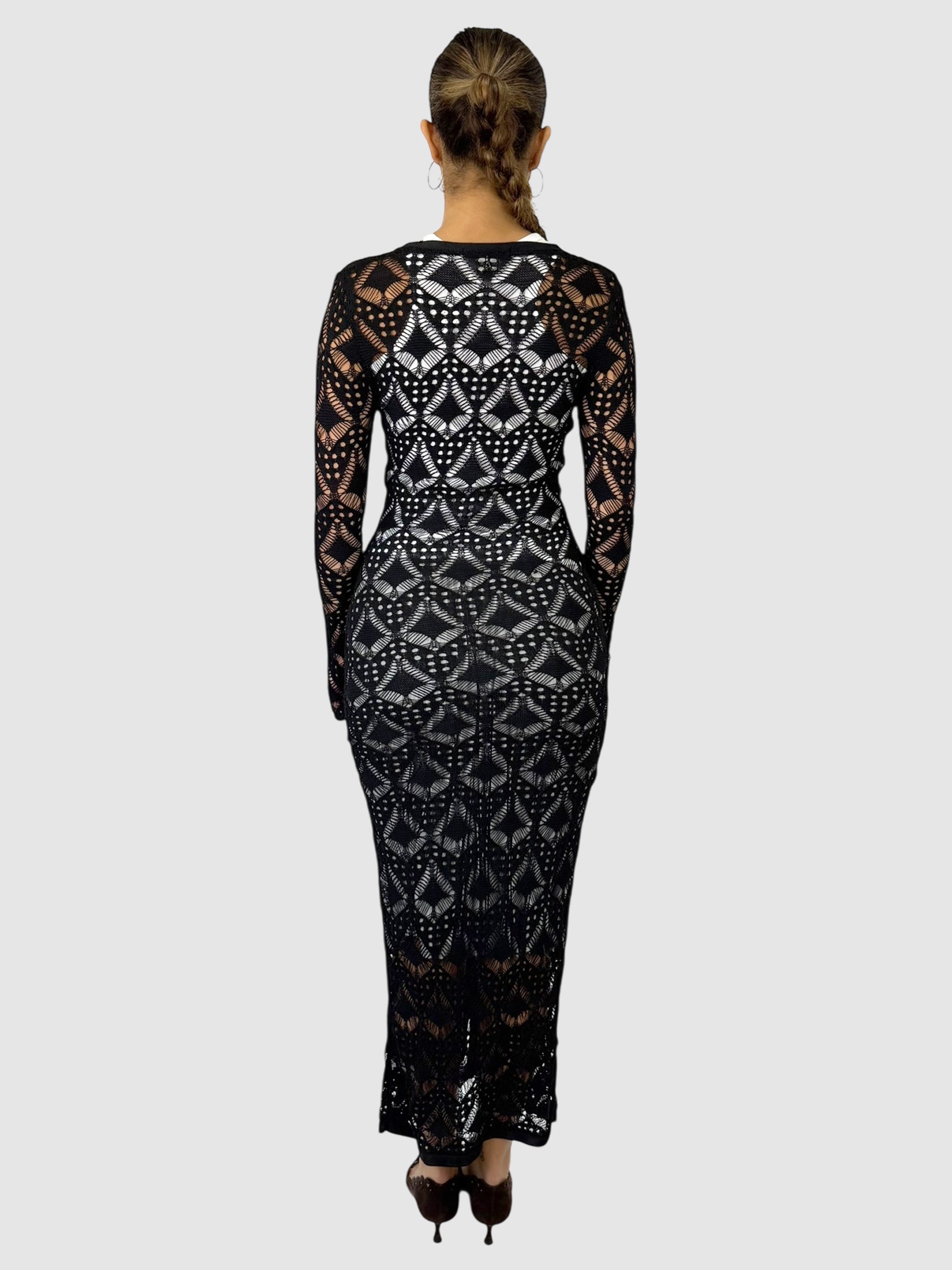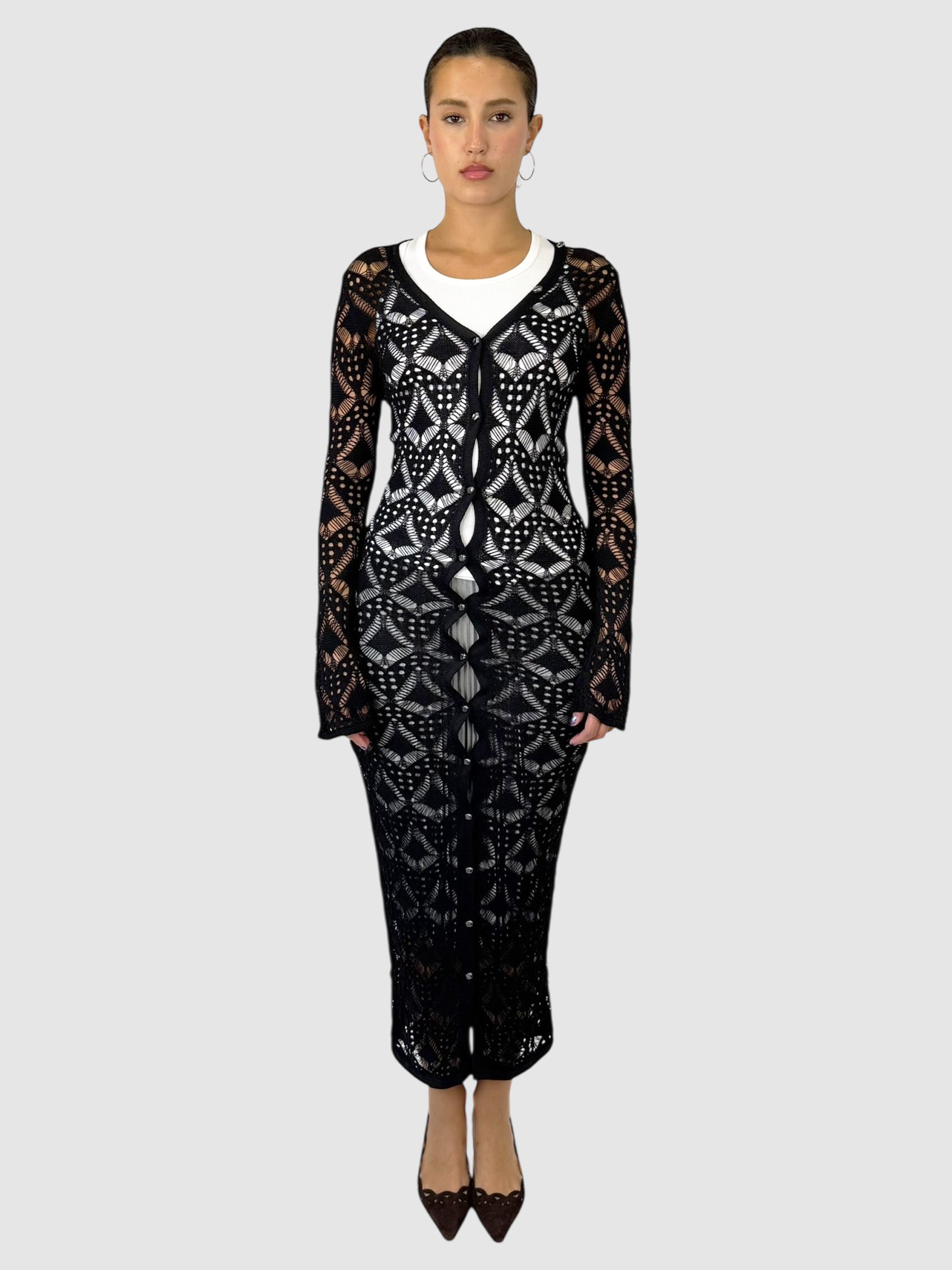 Manière De Voir Black Lace Knit Longline Cover Up Cardigan Dress, Size Large.
