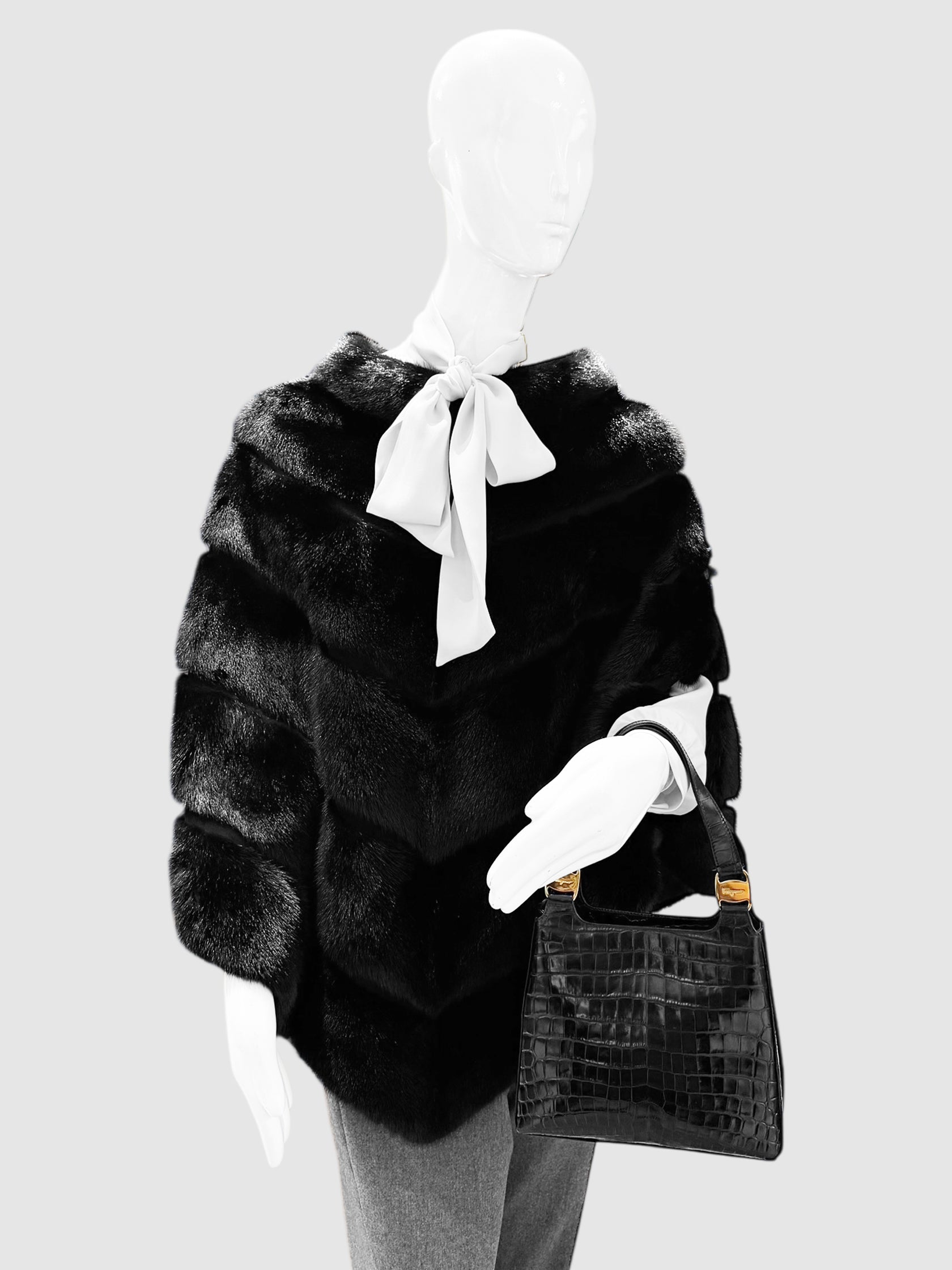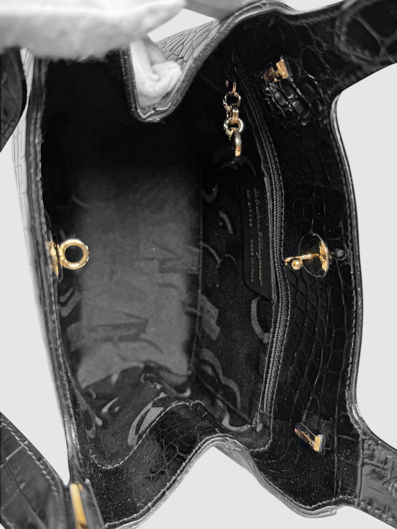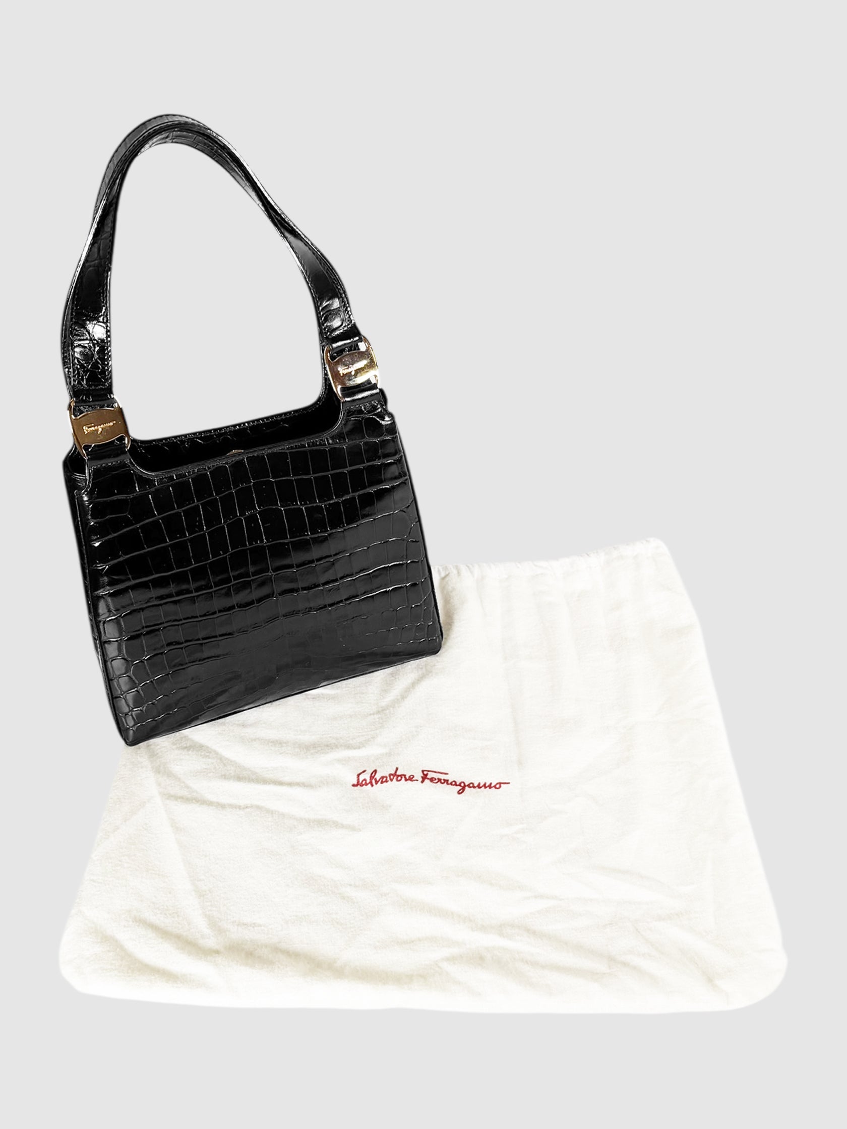 Salvatore Ferragamo Black Crocodile-Embossed Leather Small Bag.