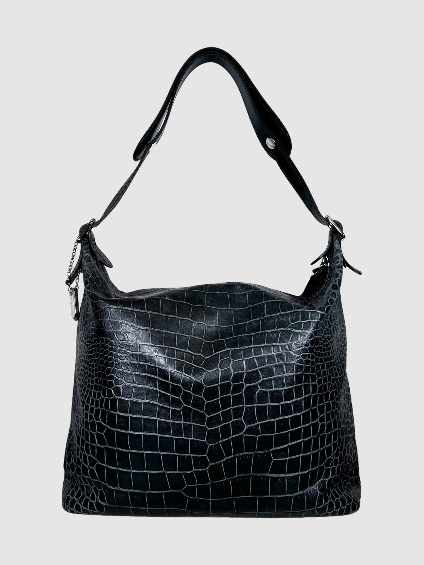 Croc Embossed Leather Shoulder Bag