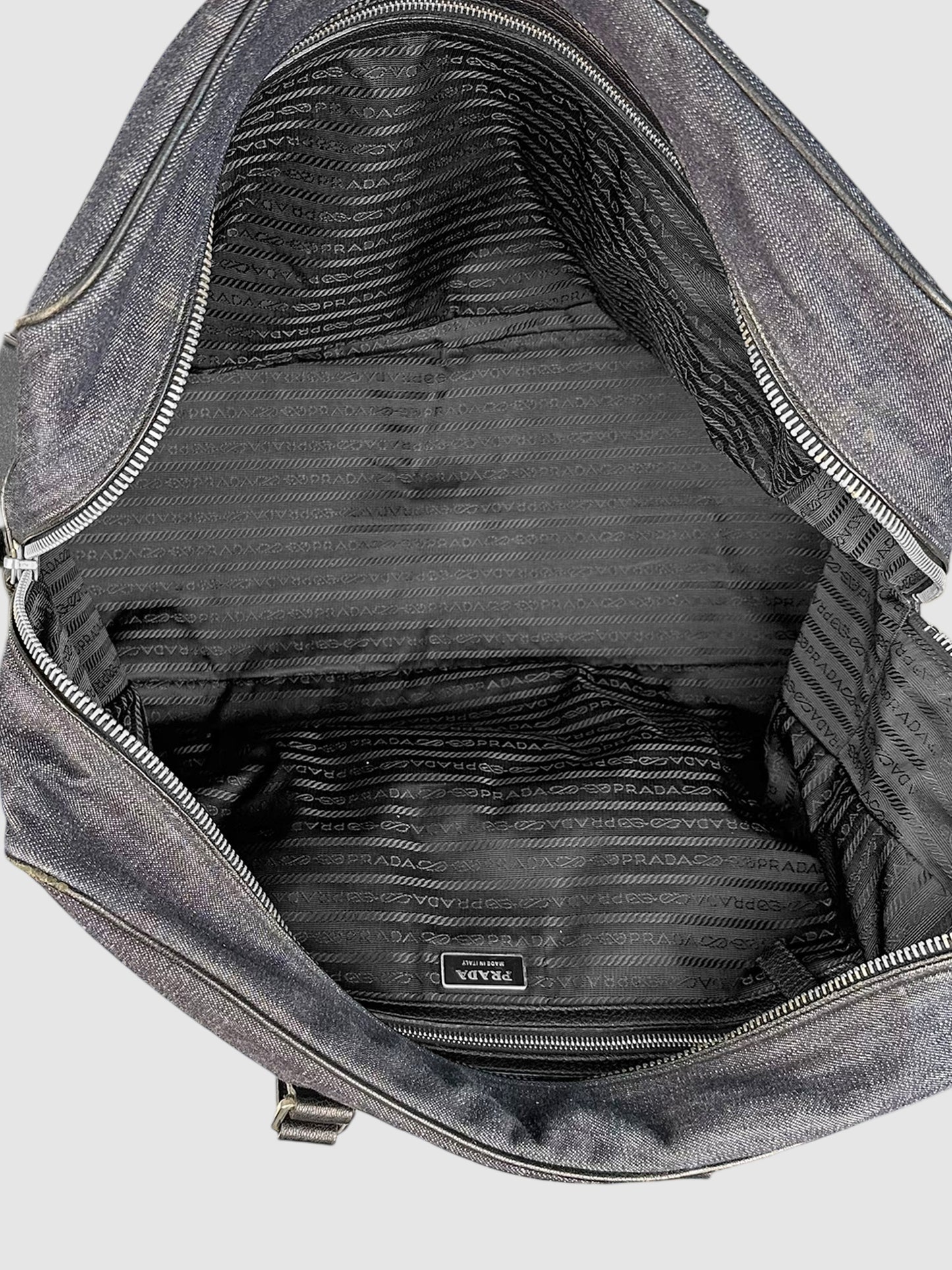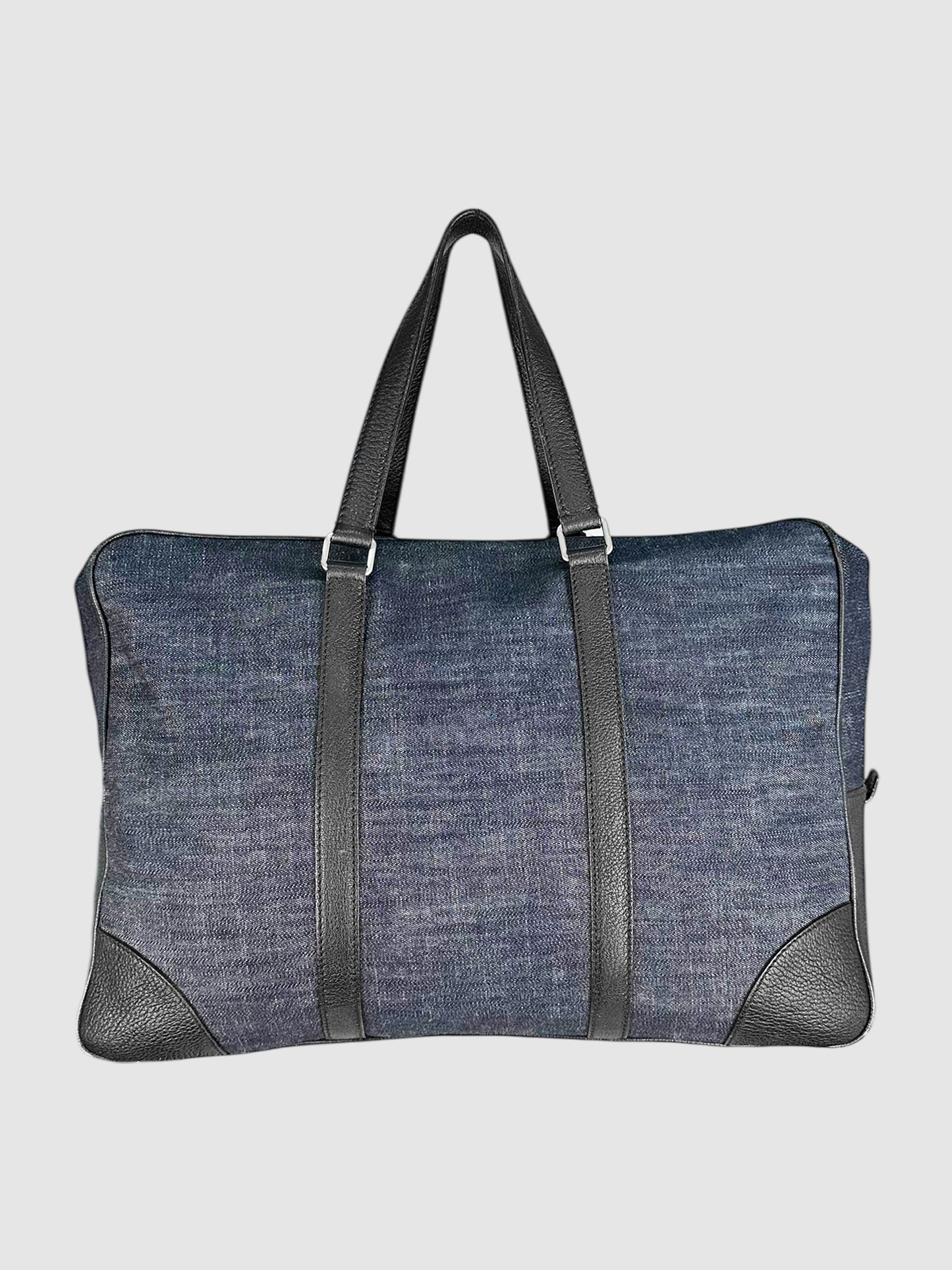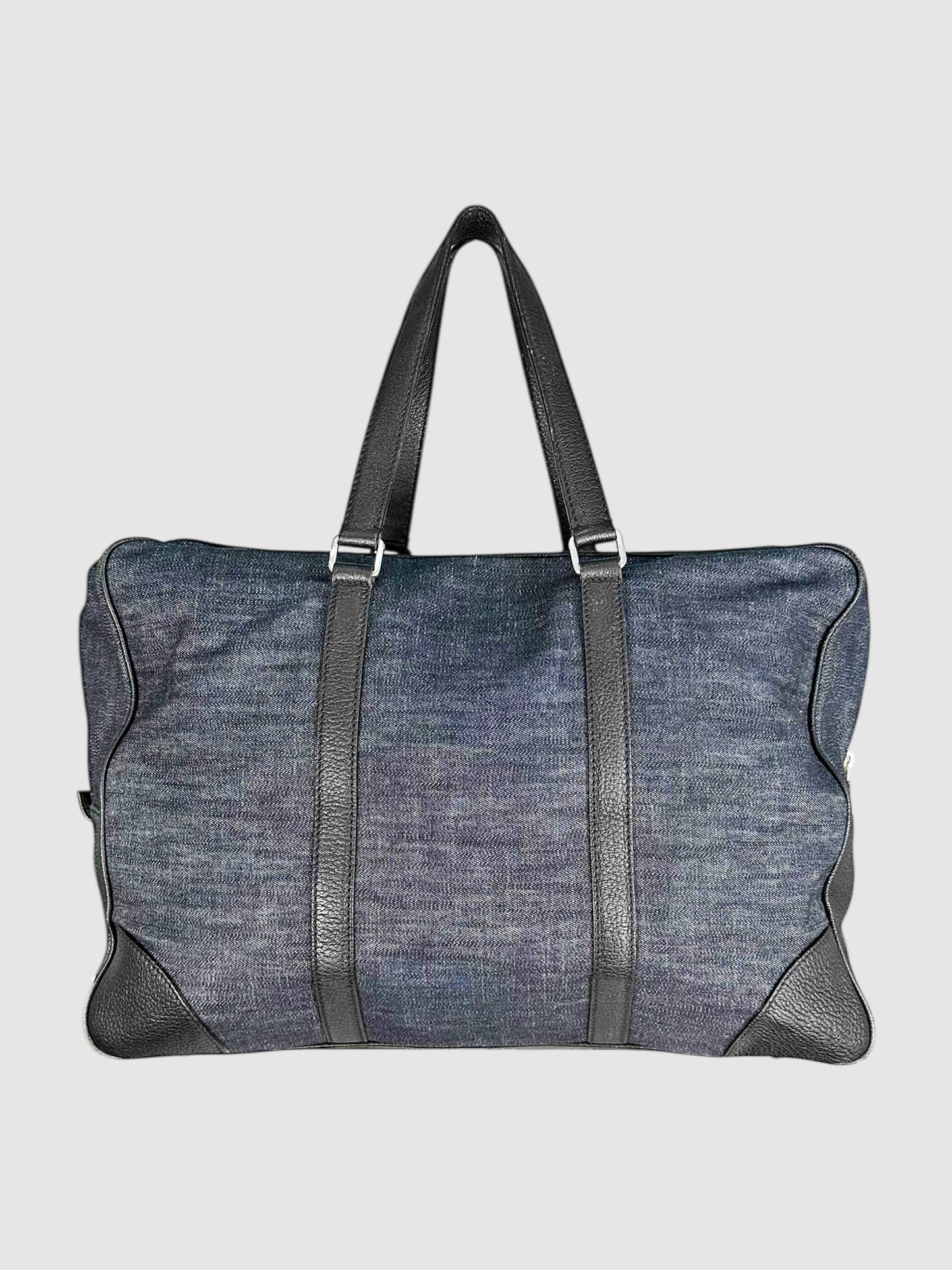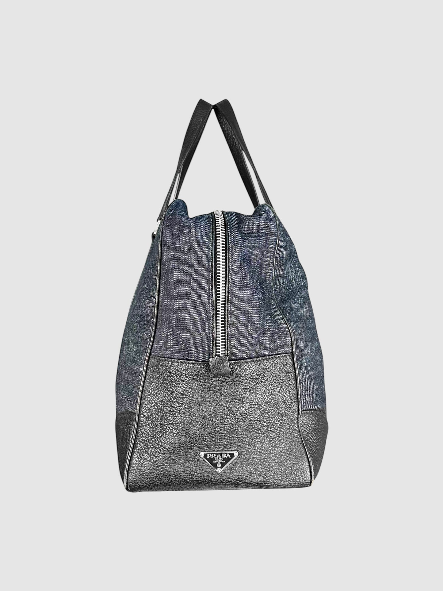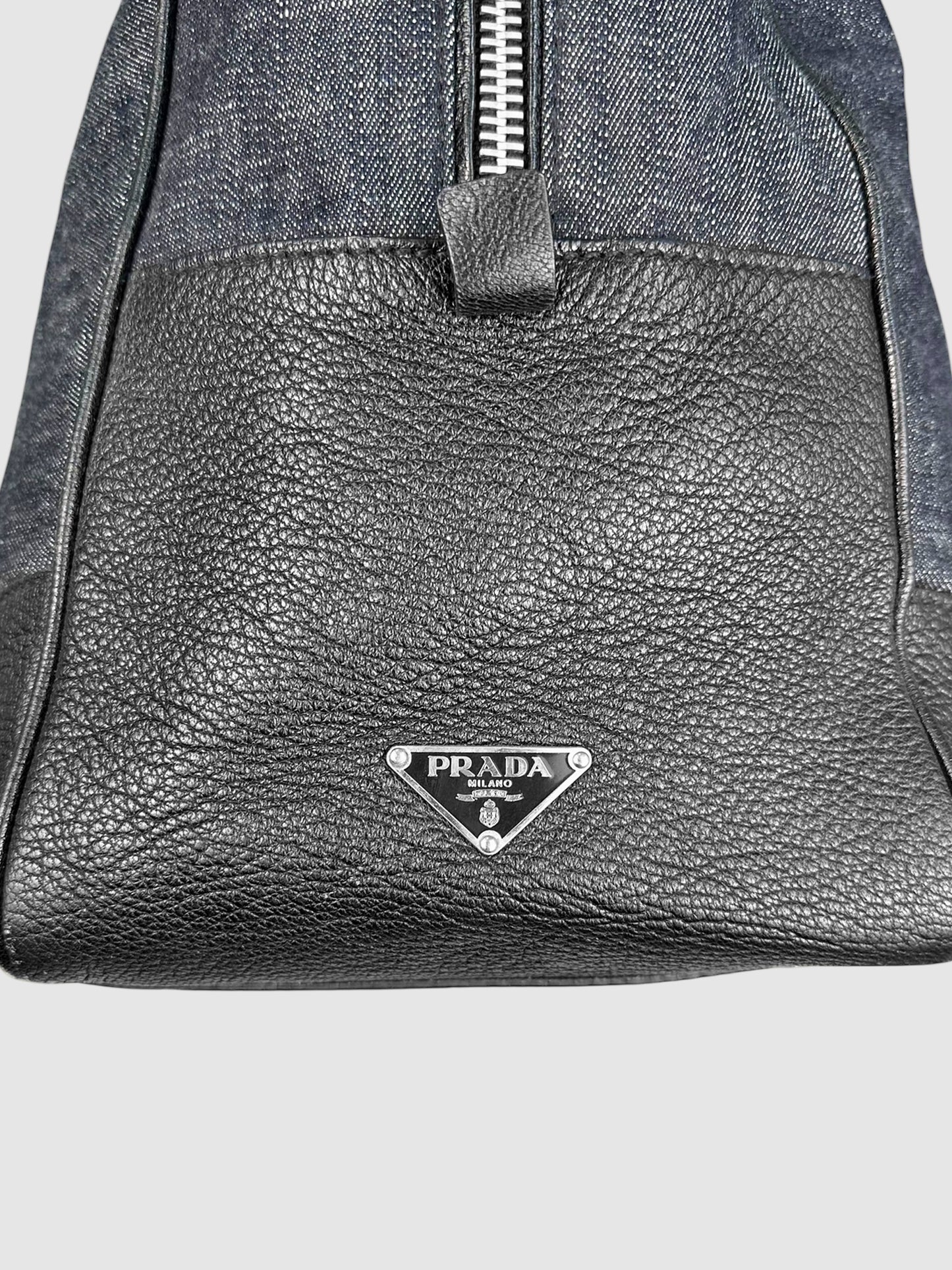 Prada Navy Blue and Black Denim and Leather Duffle Bag.