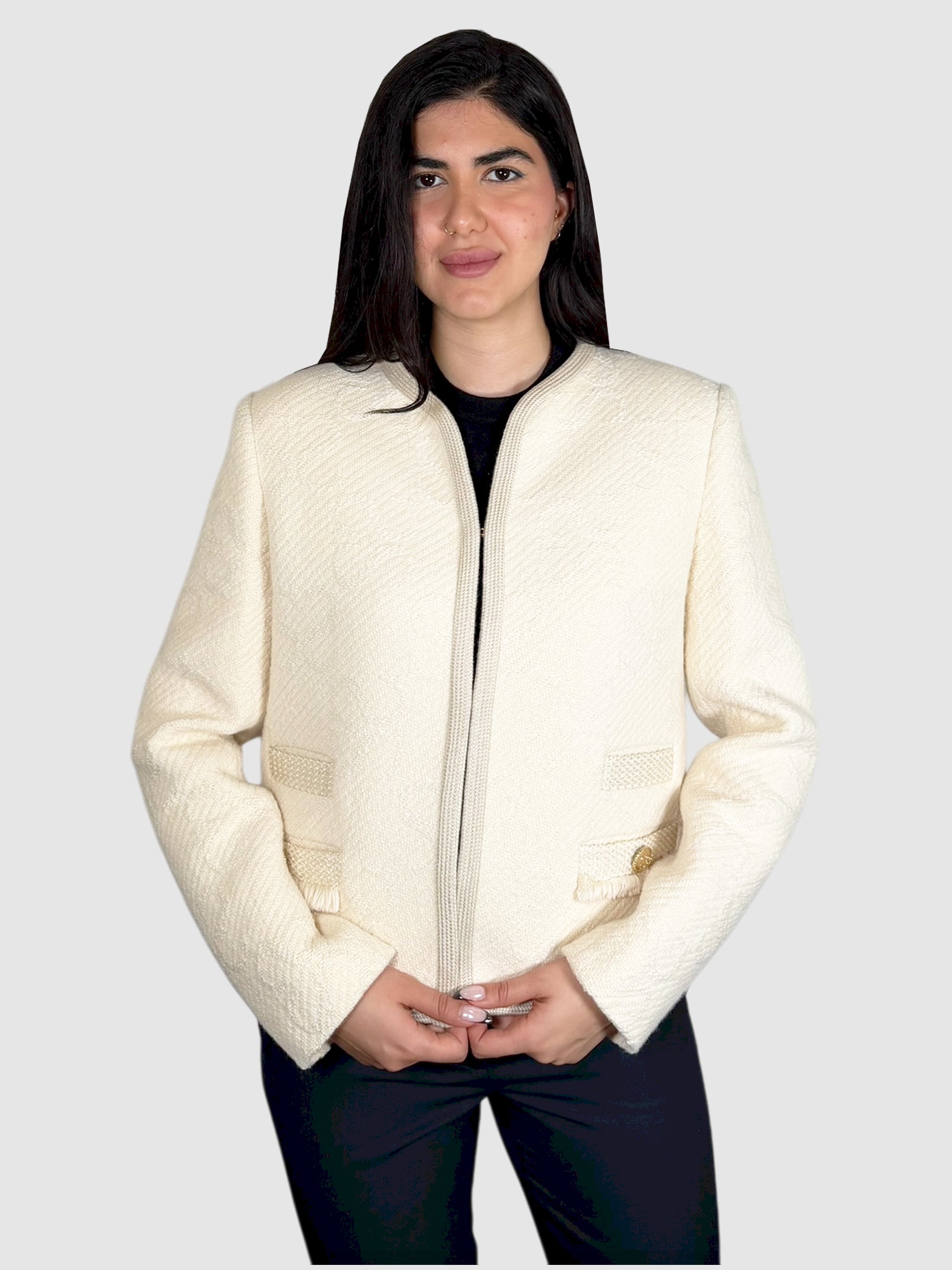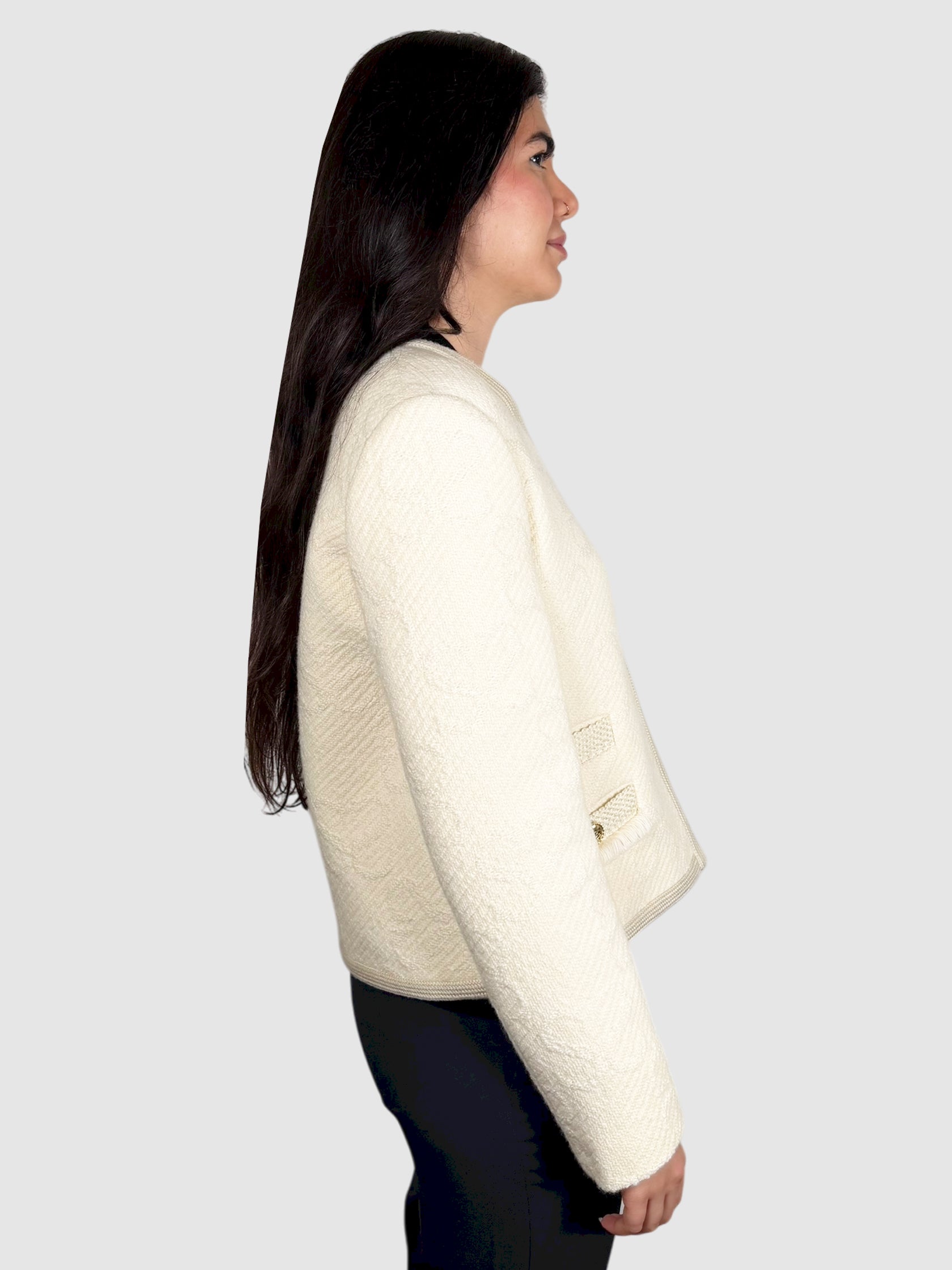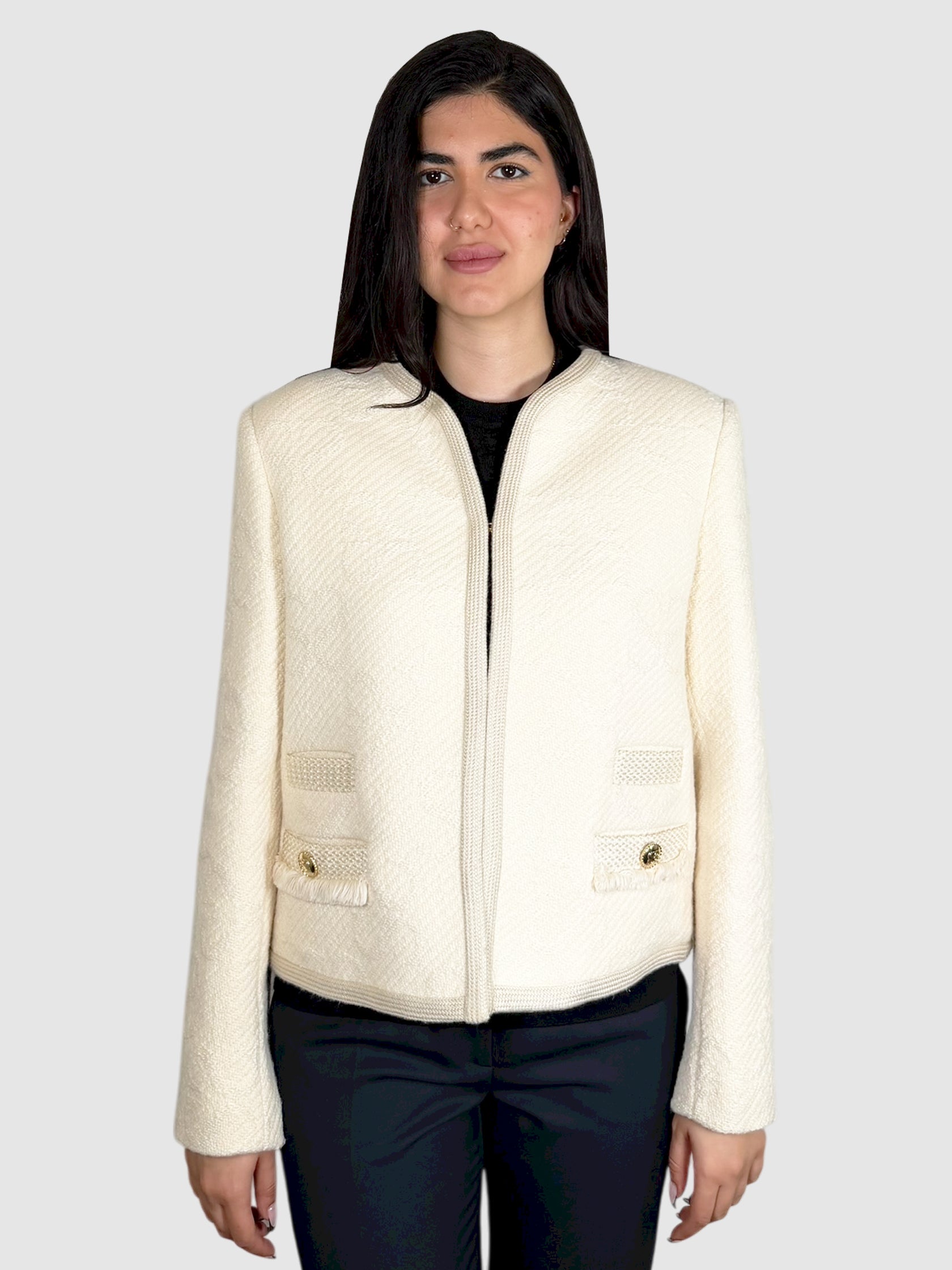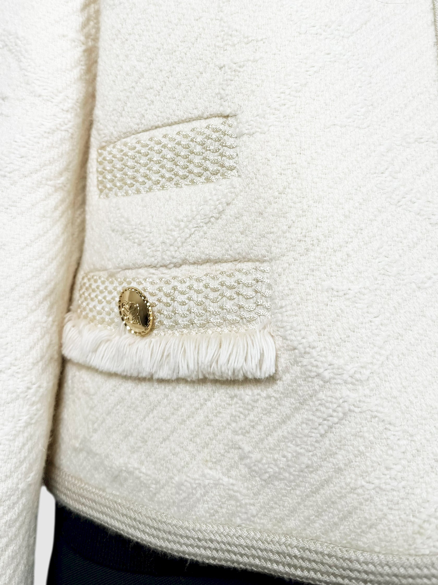 Sandro Cream Wool-Blend Double S Jacket - Size FR 38.