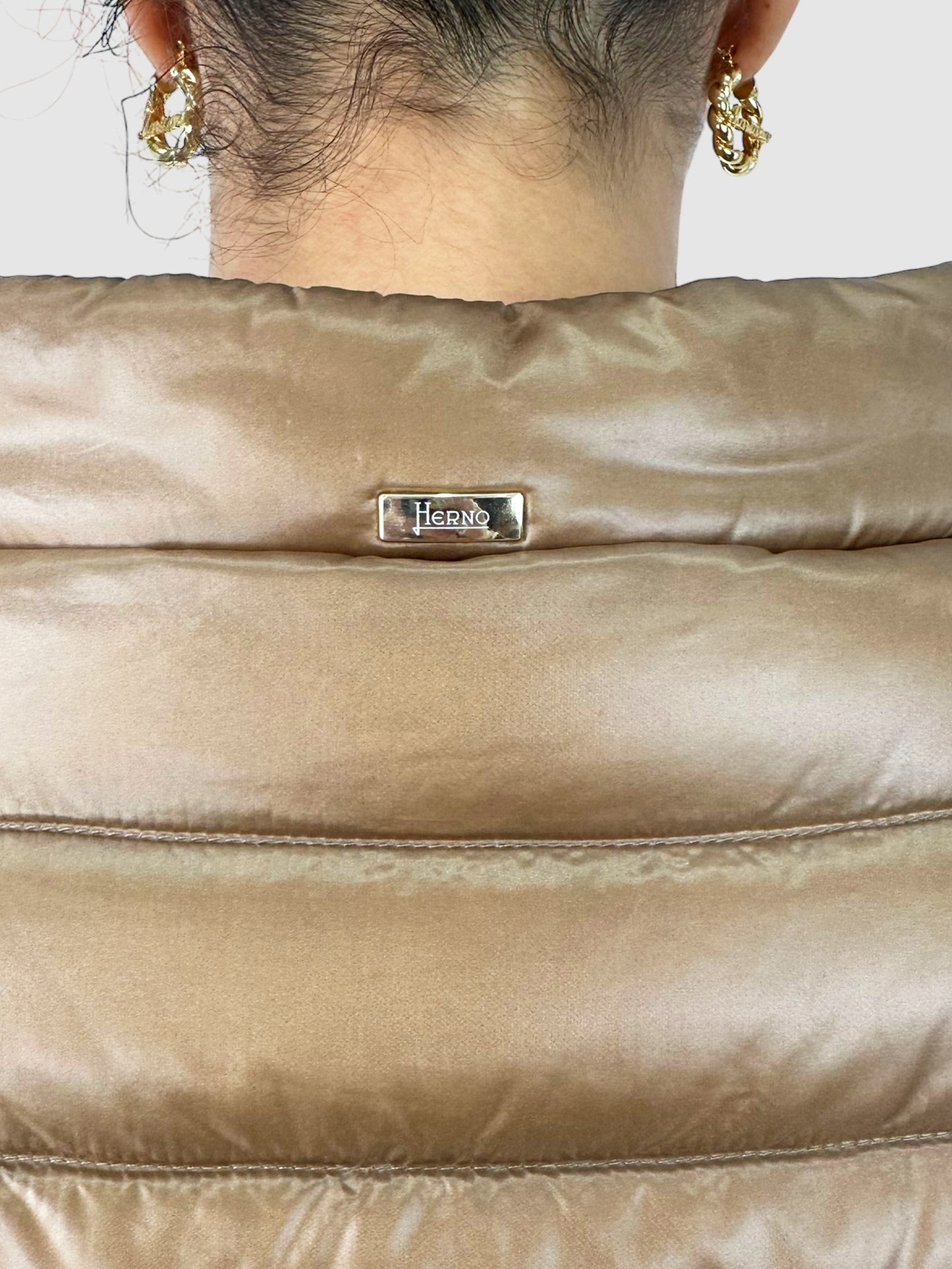 Herno Light Brown Emilia Puffer Cap Sleeve Jacket - Size Small.