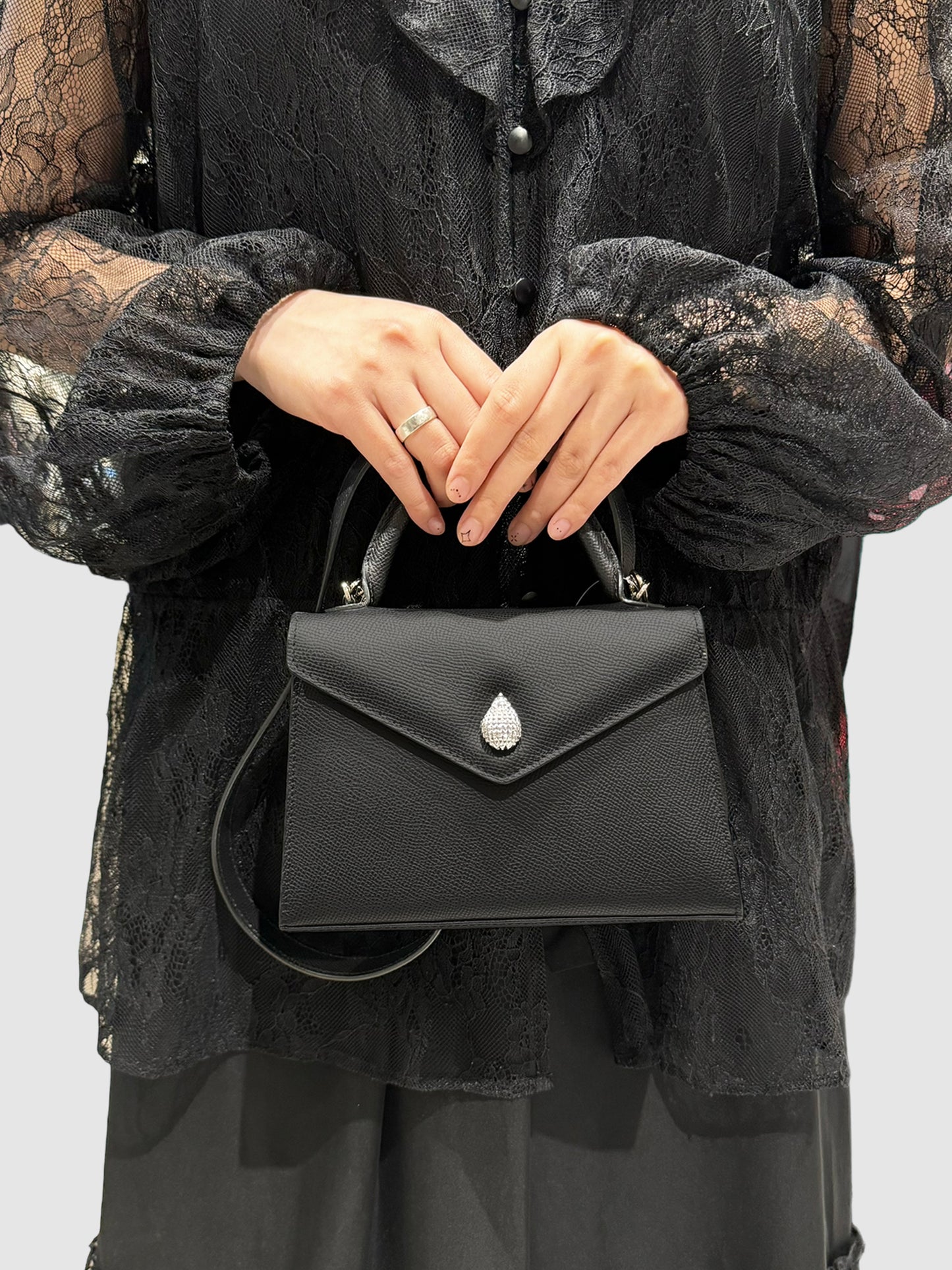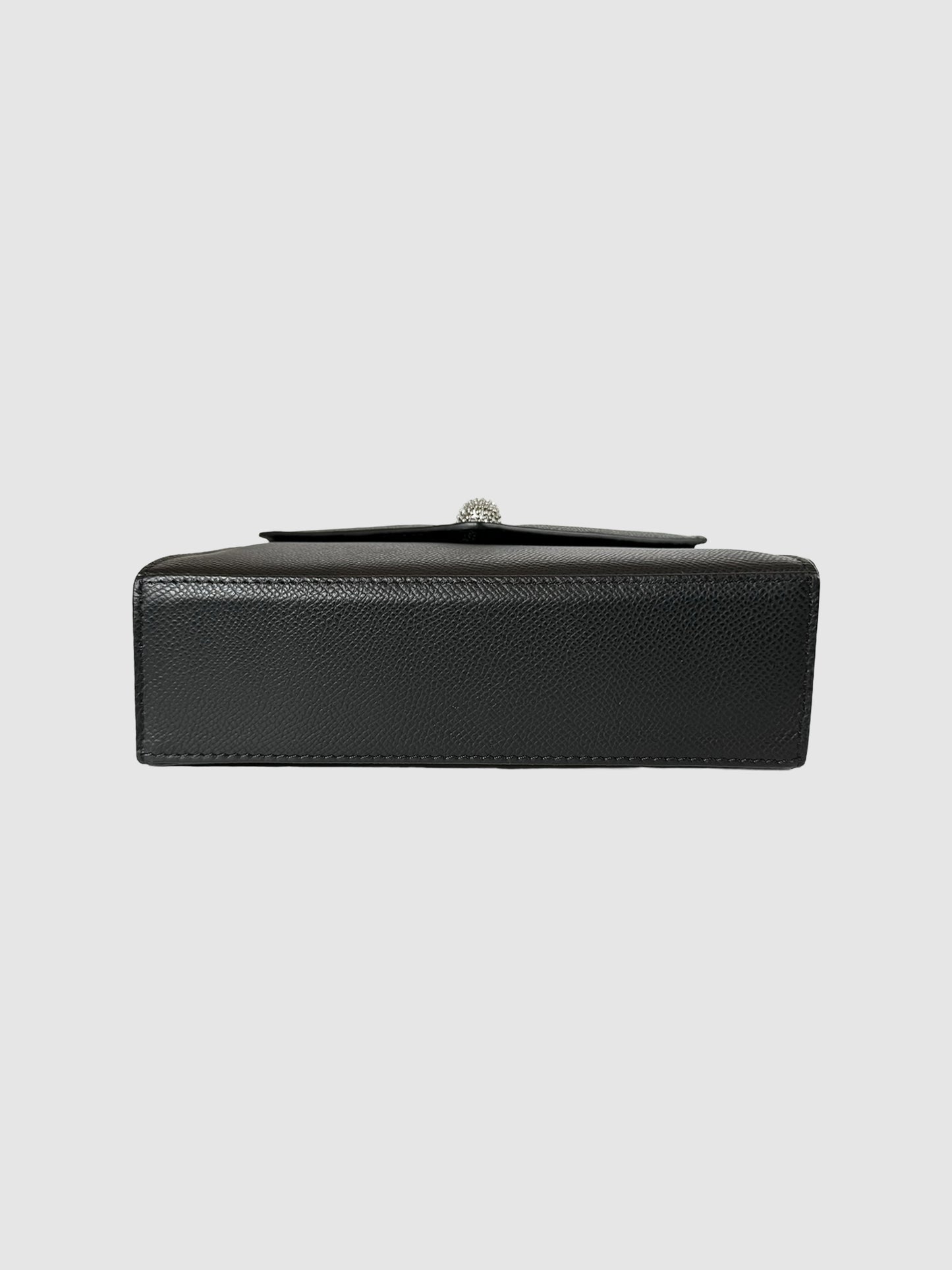 Ethan K Alla 20cm Bag in Black Grained Leather. This bag has an A-line structure, with silver-tone hardware, a magnetic snap closure, a detachable crossbody strap, and one interior slip pocket. Comes with original dust bag and box.
