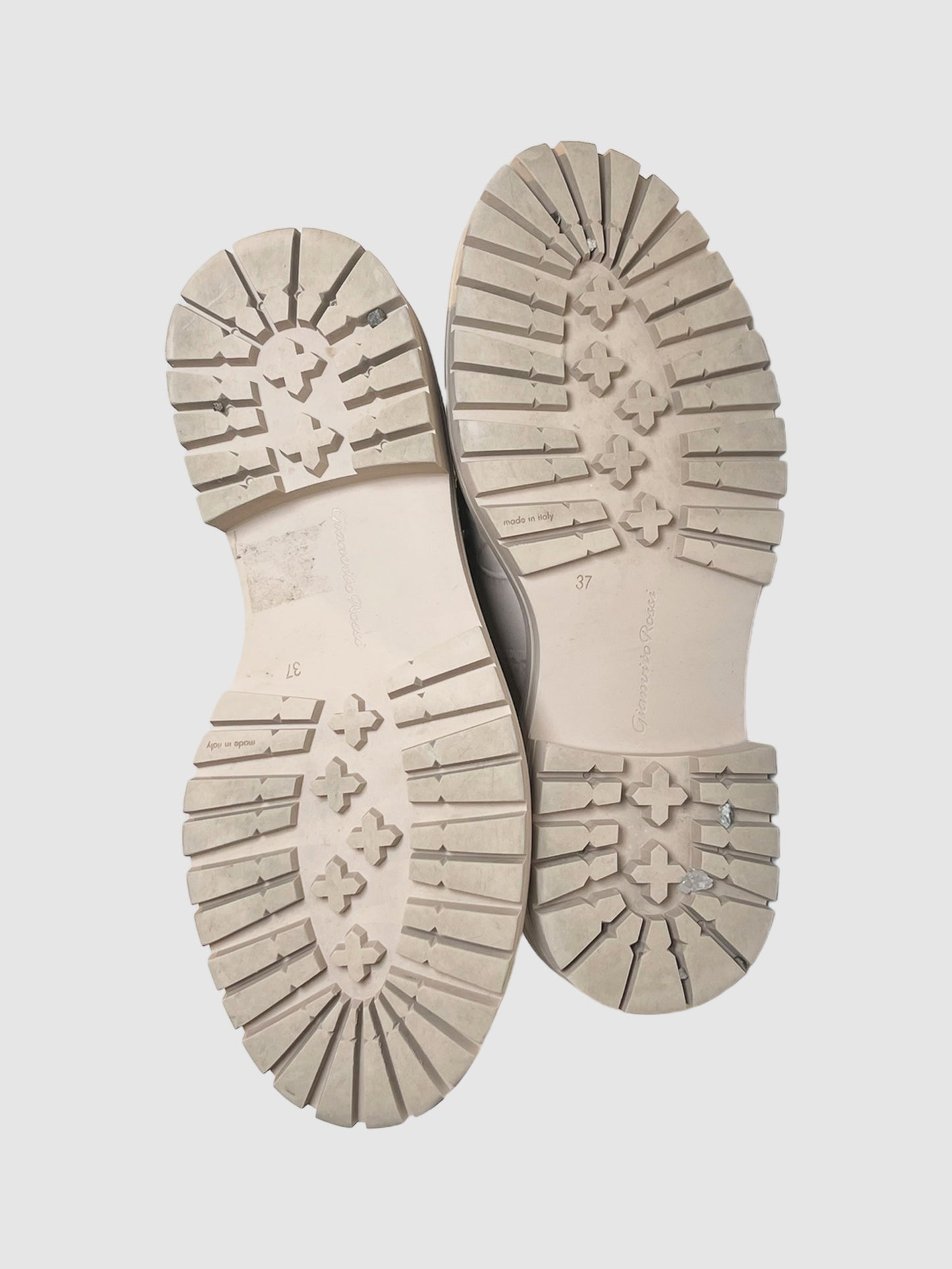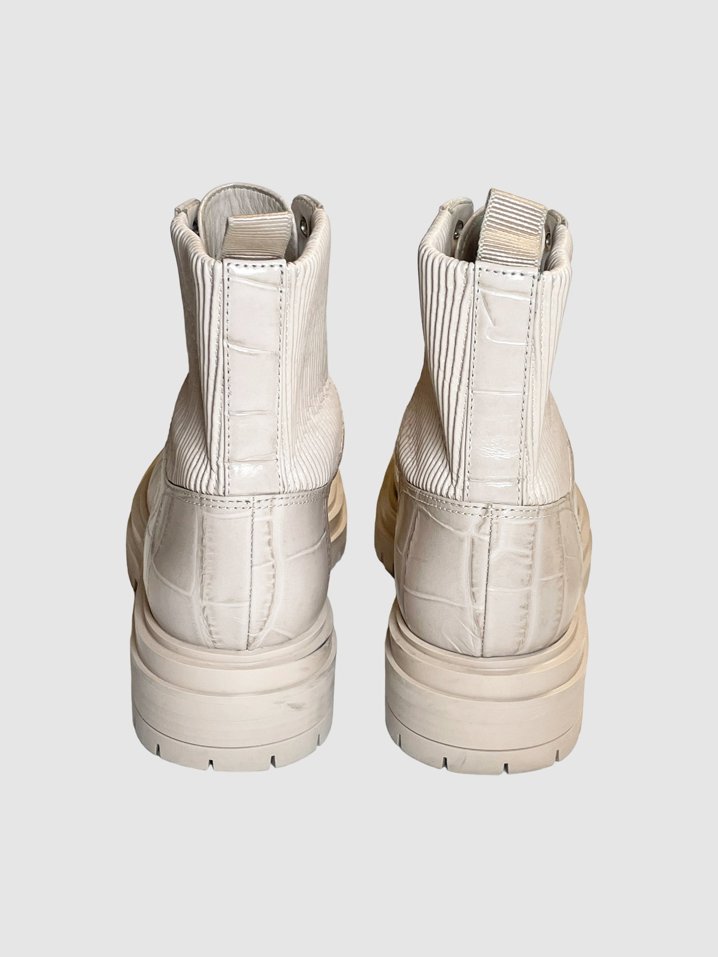 Gianvito Rossi Beige Croc Embossed Lace-Up Combat Boots, Size 37.