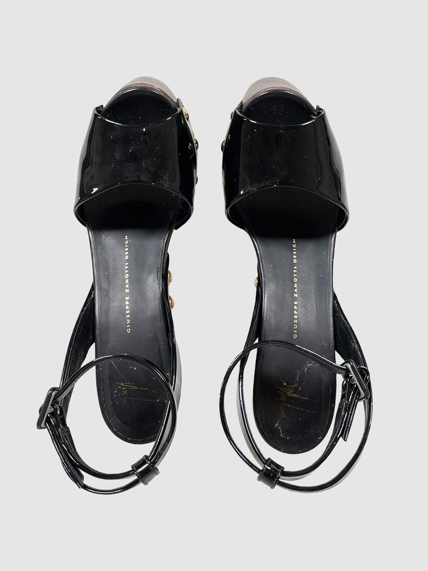 Giuseppe Zanotti Patent Leather Pumps with Wooden Platform - Size 39