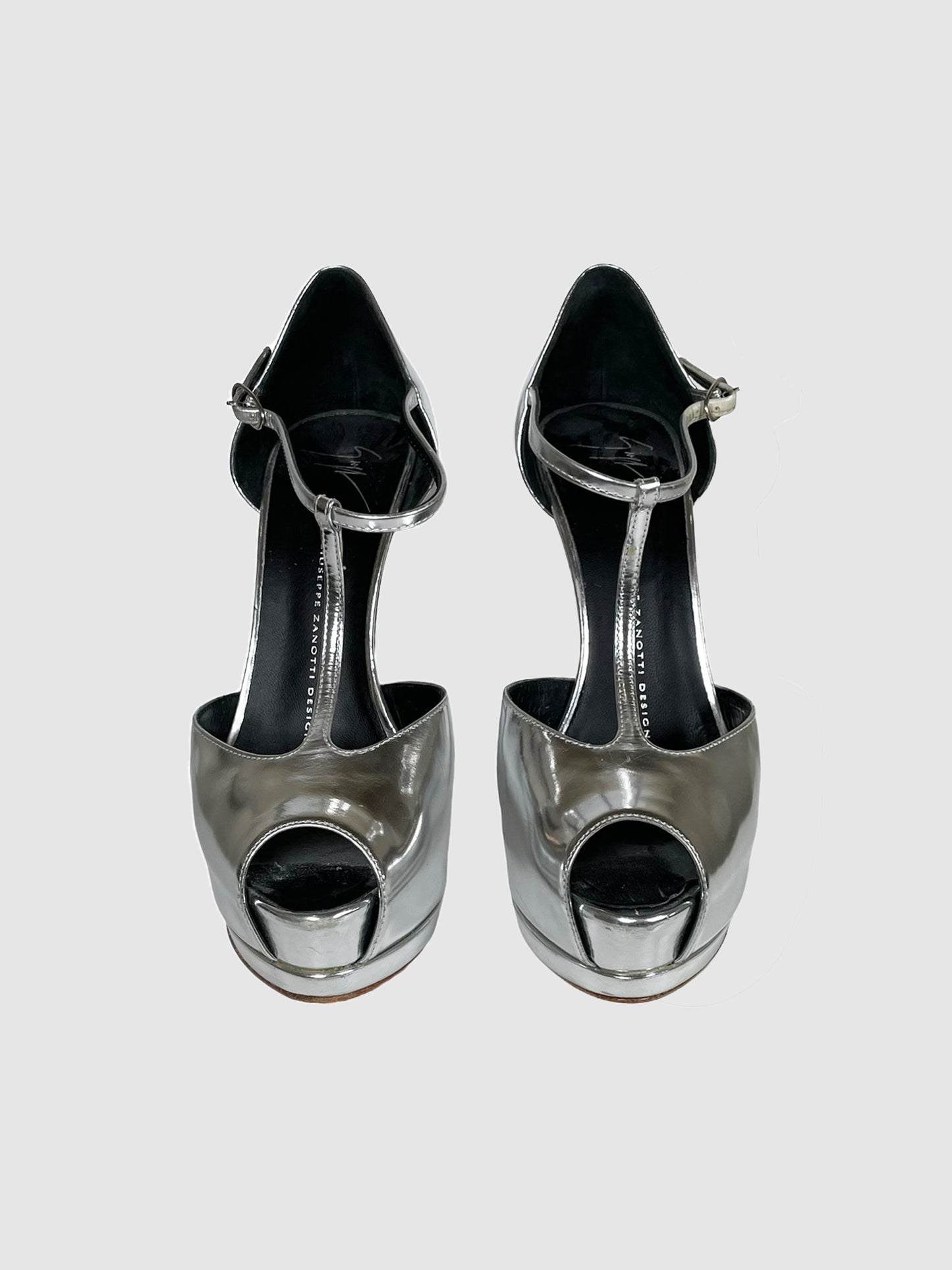 Giuseppe Zanotti Silver and Blue Platform Heels - Size 38
