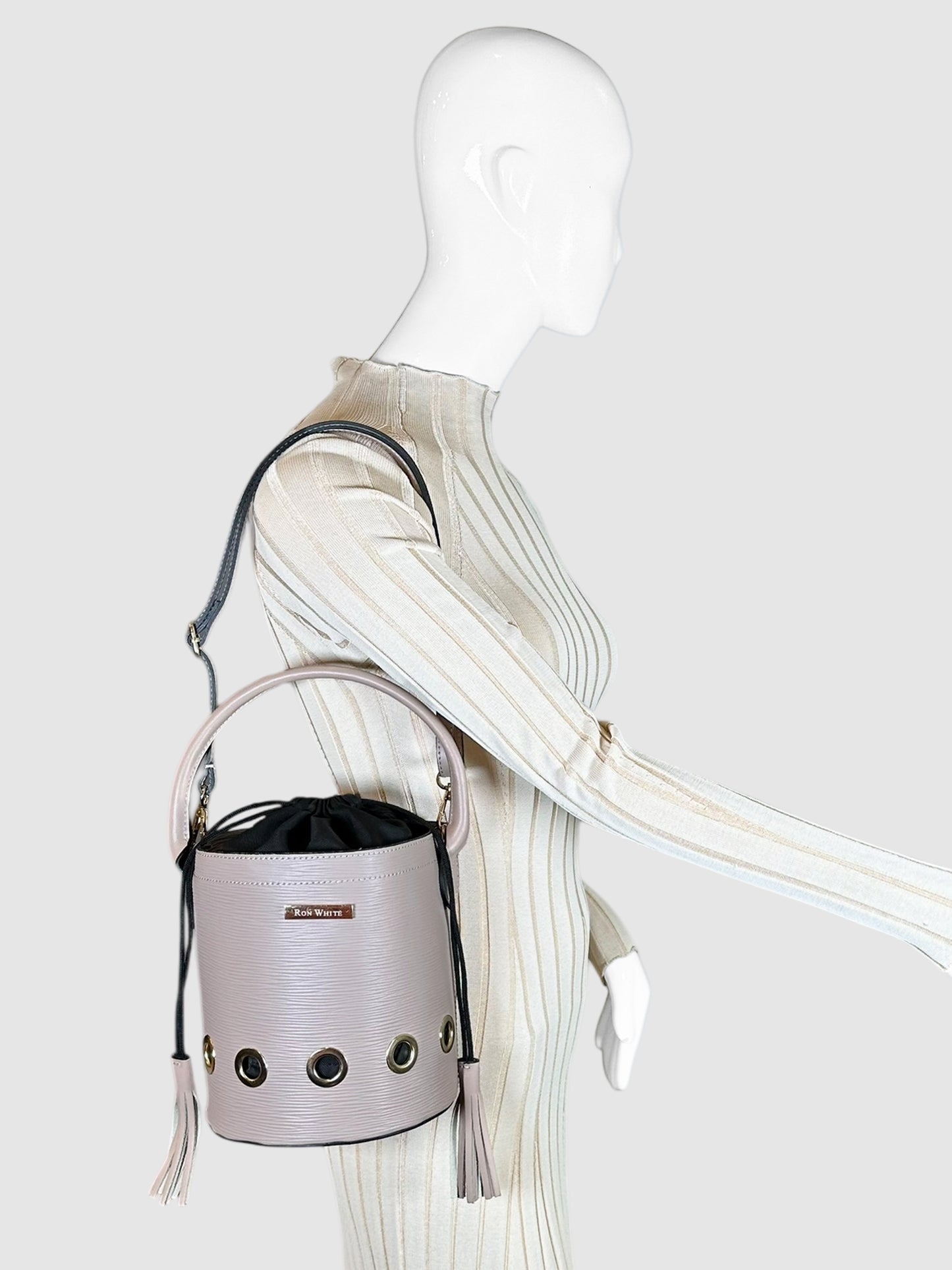 Ron White Dusty Pink Leather Grommet Detail Lipori Bucket Bag.