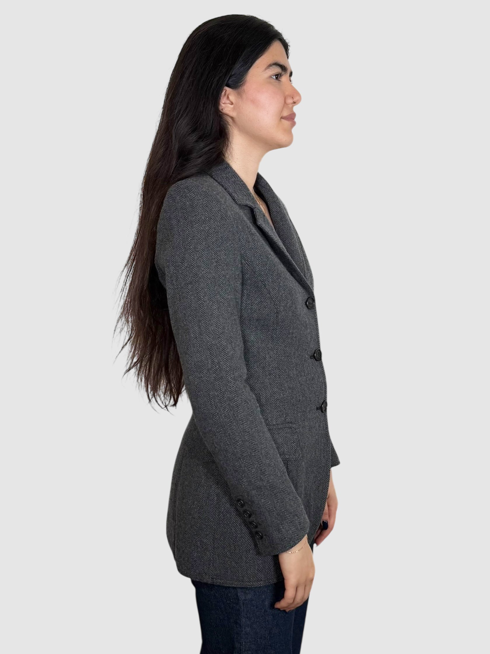 Smythe Dark Grey Houndstooth Wool Blazer, Size 4.
