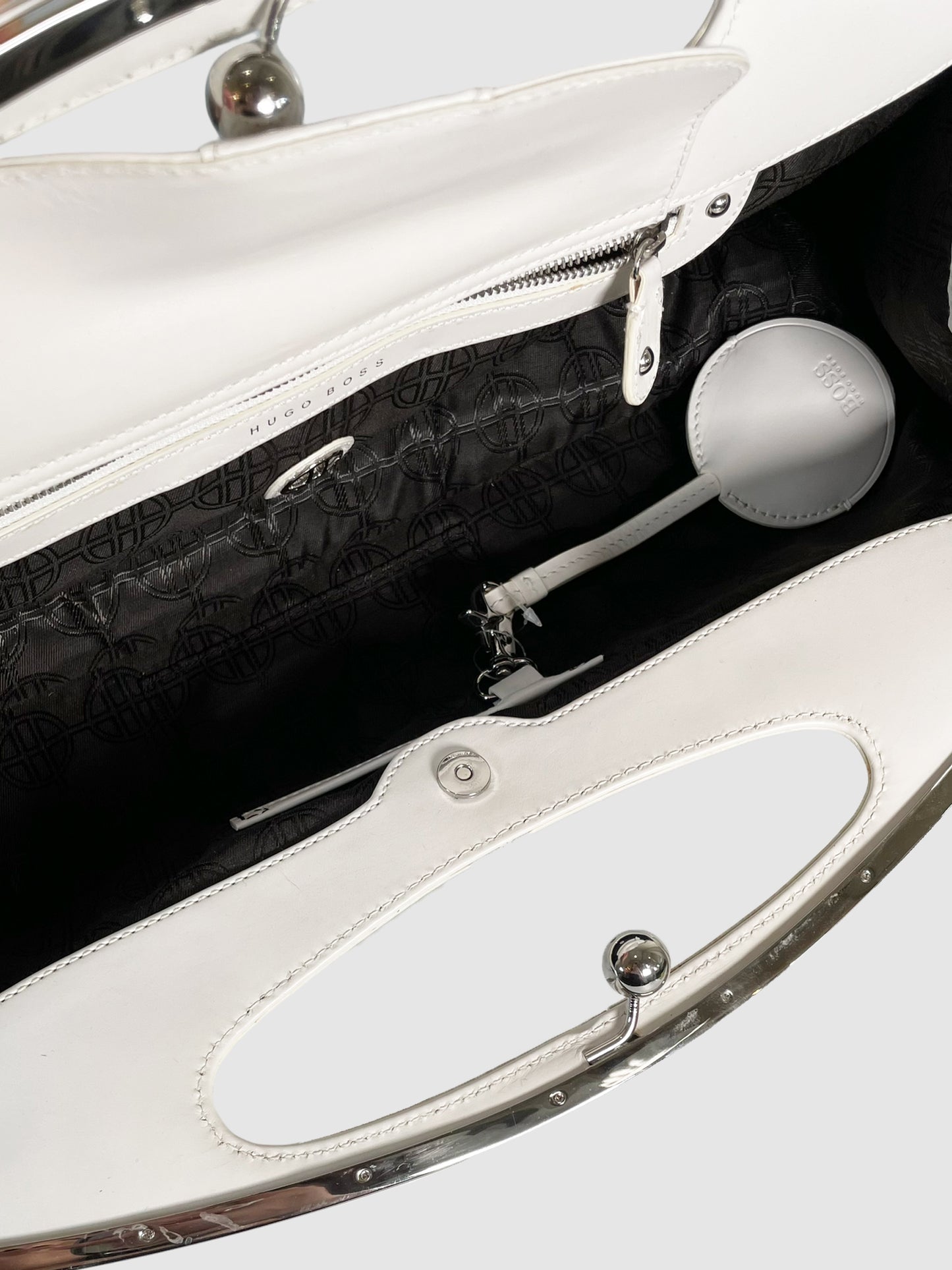 Hugo Boss Large White Leather Clutch with Kiss Lock