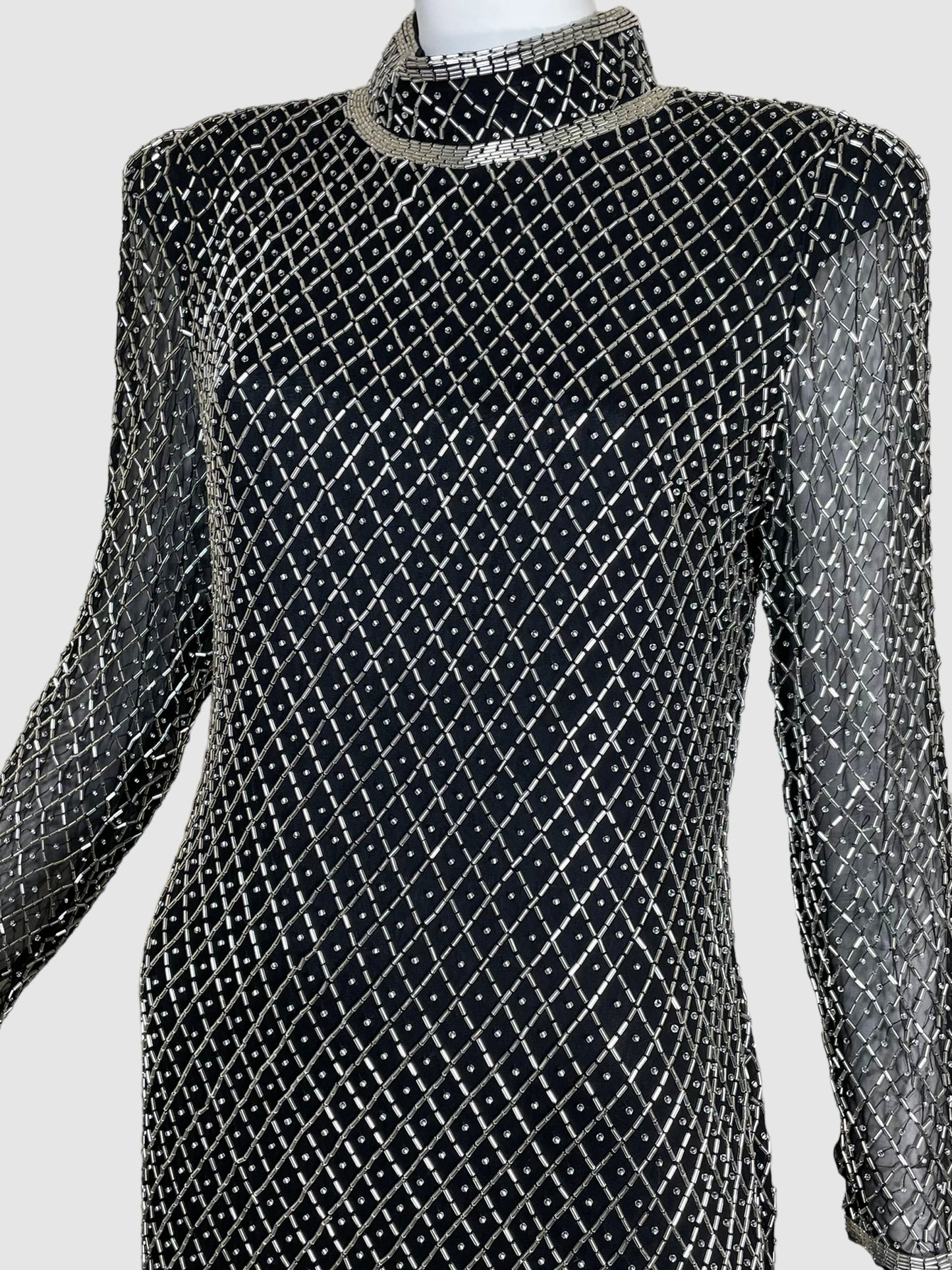 Joan Leslie Beaded Maxi Long-Sleeve Dress - Size 8