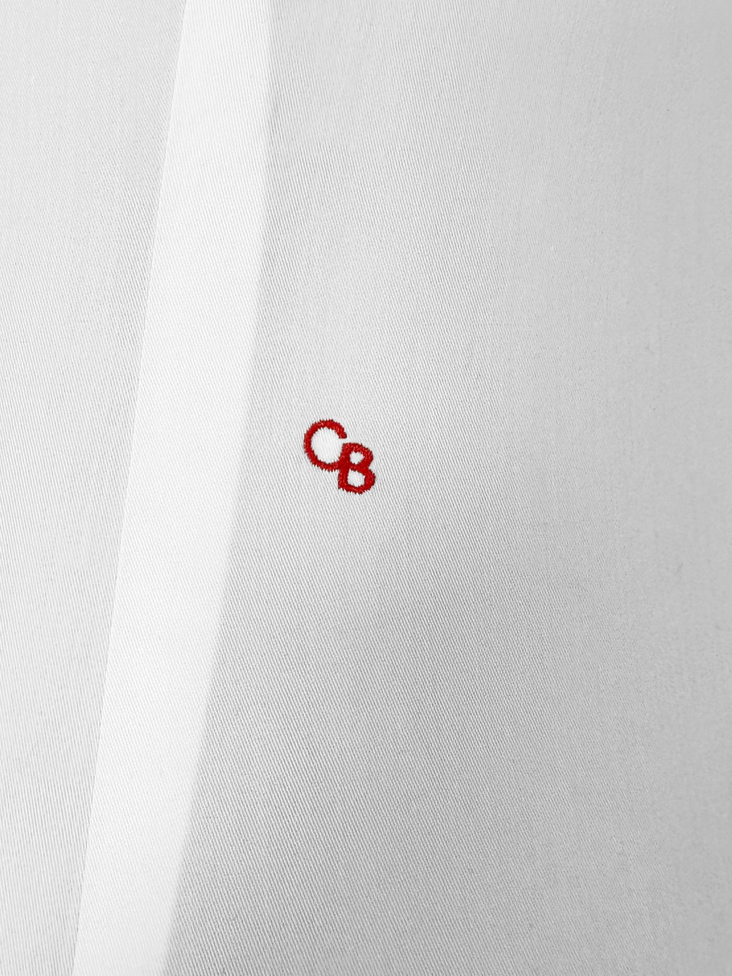 Christopher Bates White Button Down Top with Lipstick Kiss Detail on Collar - Size 2.