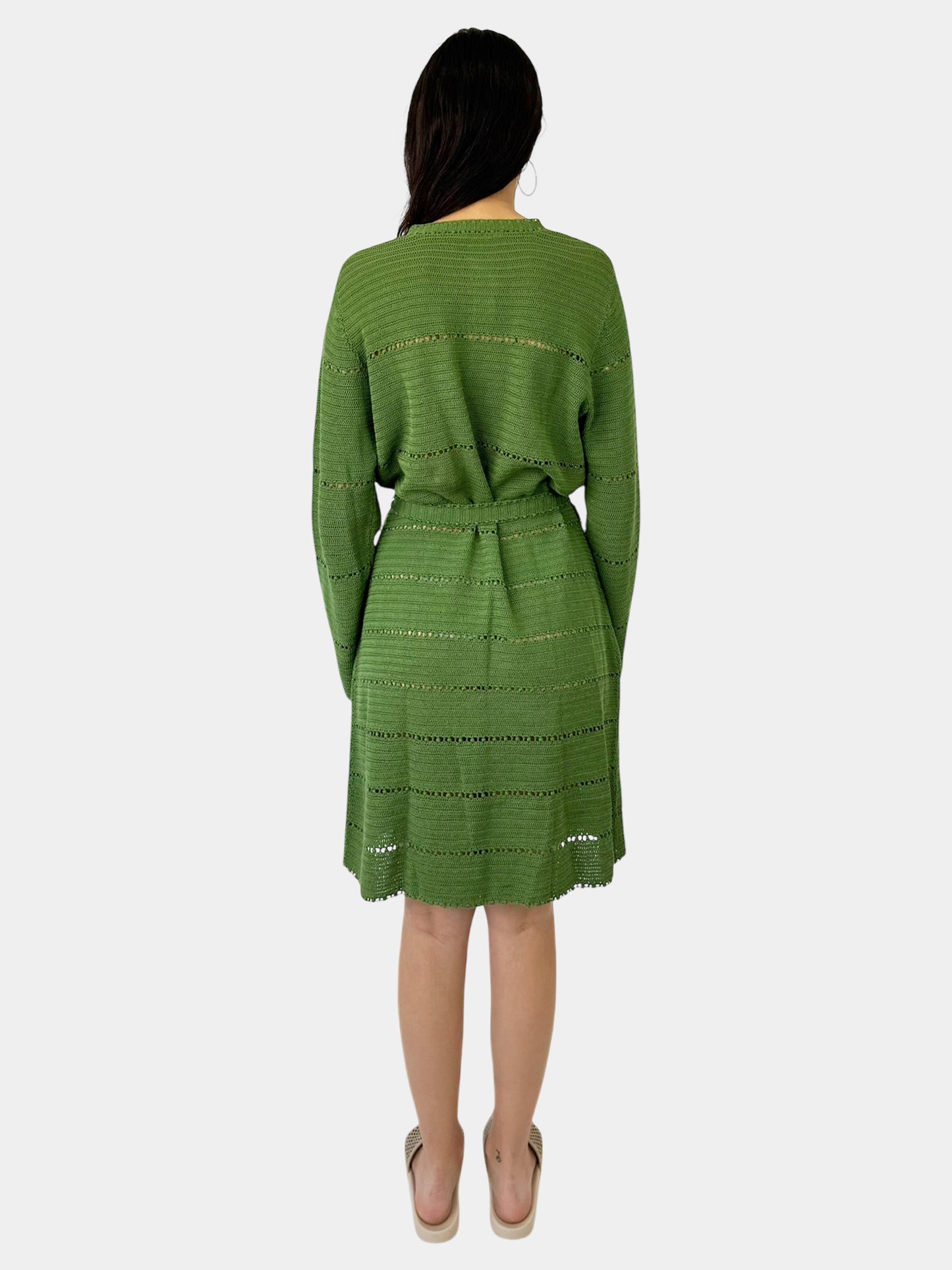 Rena Lange Green Long Sleeve Knit Button-Up Knee-Length Dress, Size Large.