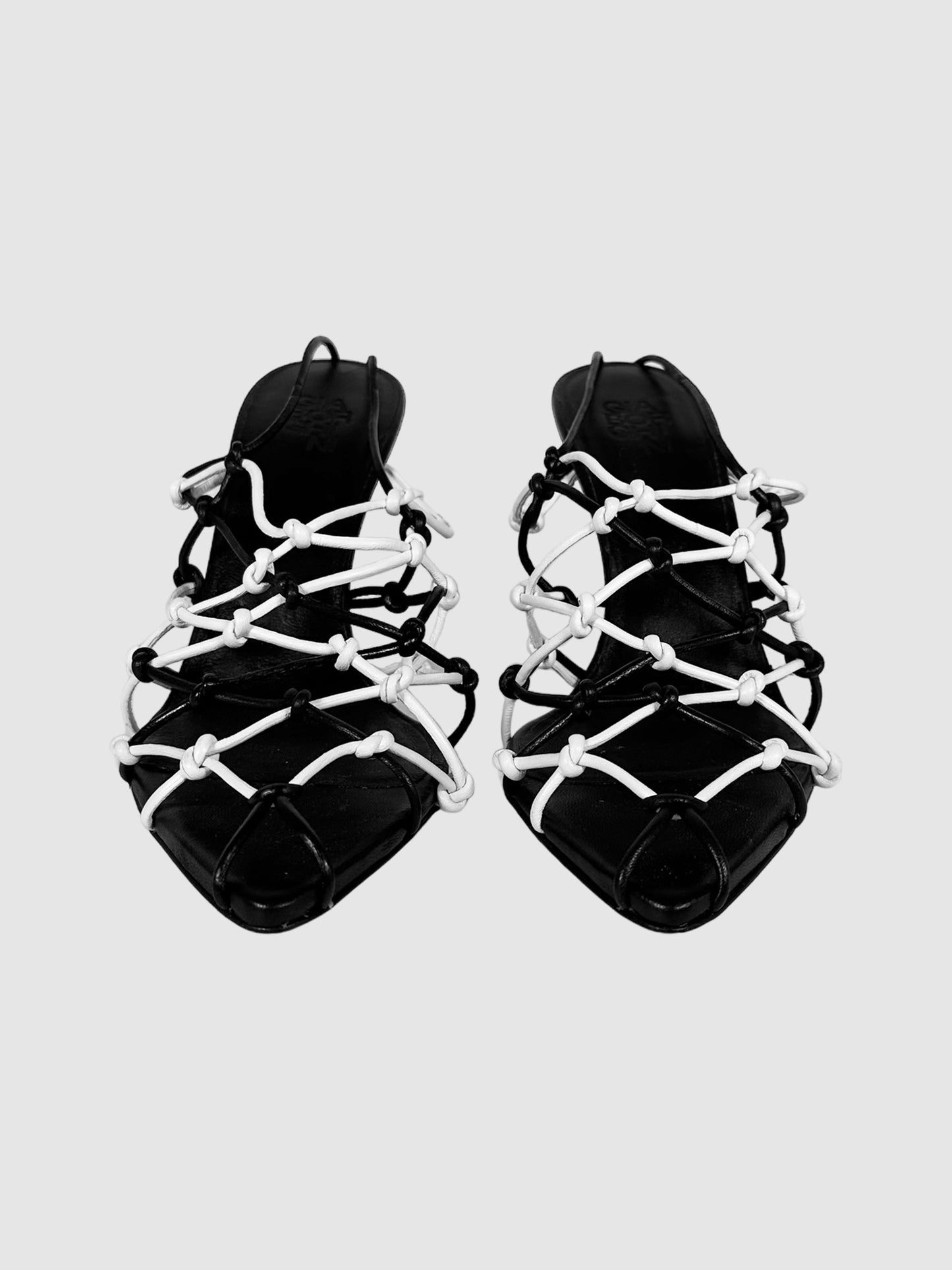 Gia Borghini Black and White Leather Knot Detailed Pointed-Toe Sandals, Size 8.5.