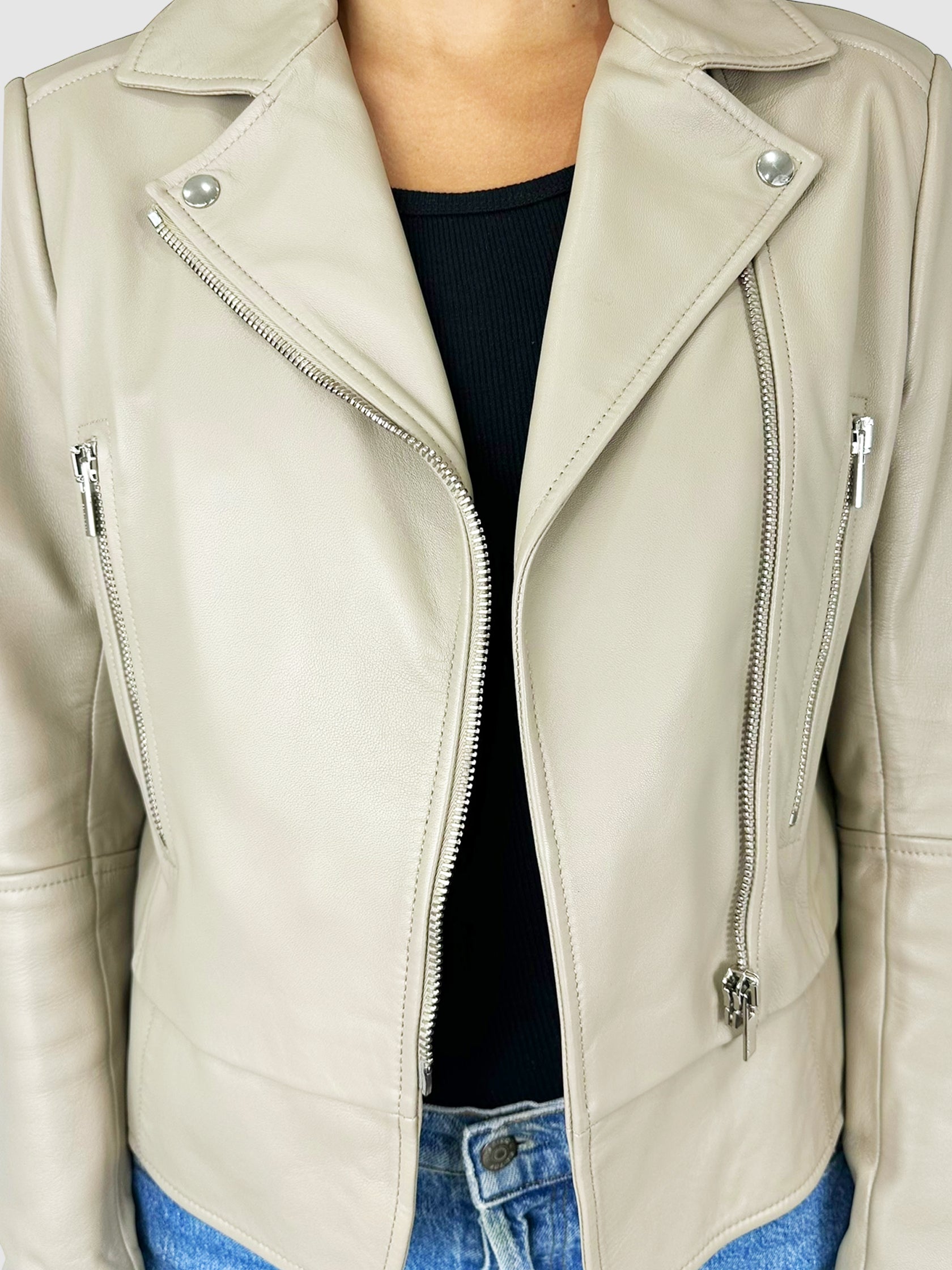 Balenciaga Beige Lambskin Leather Biker Jacket - Size IT 44.