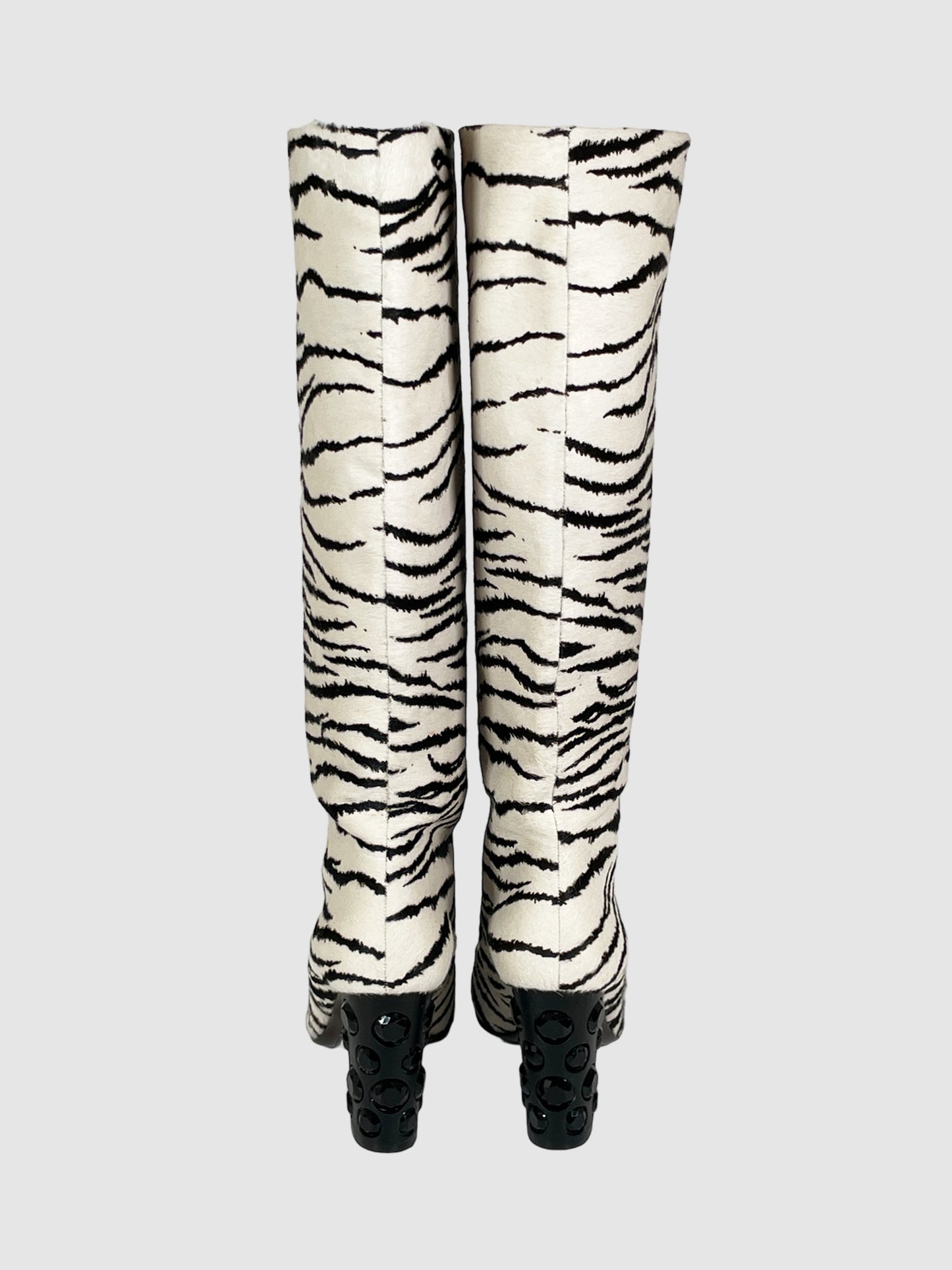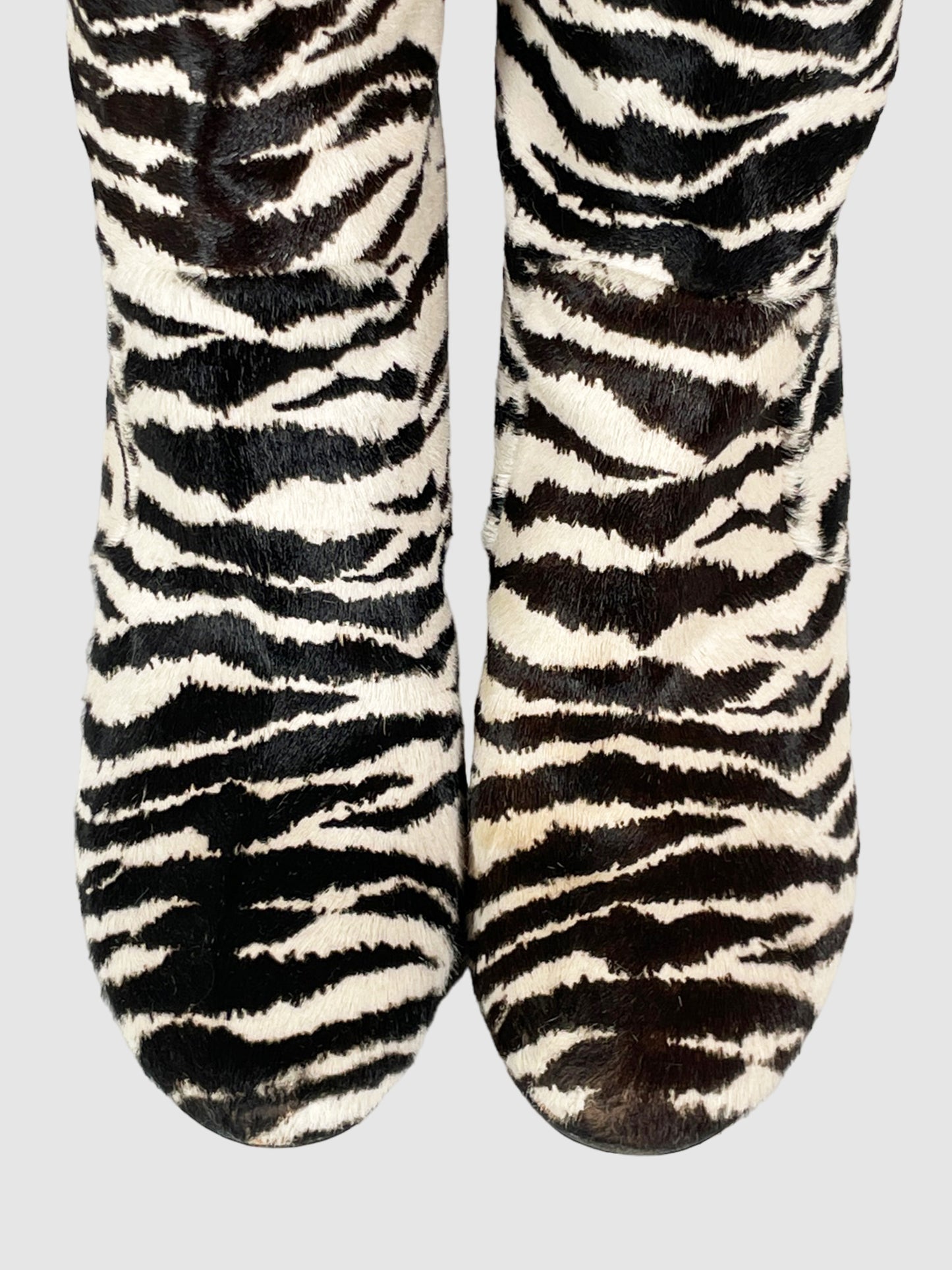Lanvin Calf Hair Animal Print Boots, Size 39.