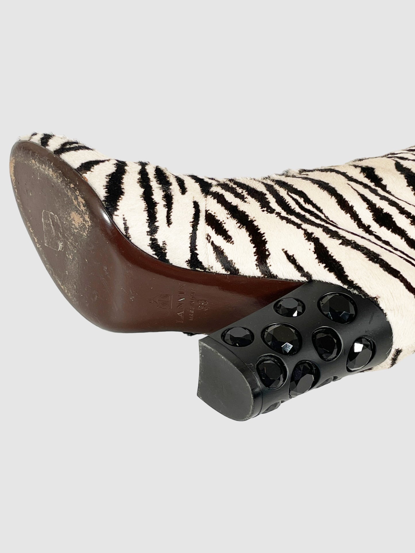 Lanvin Calf Hair Animal Print Boots - Size 39