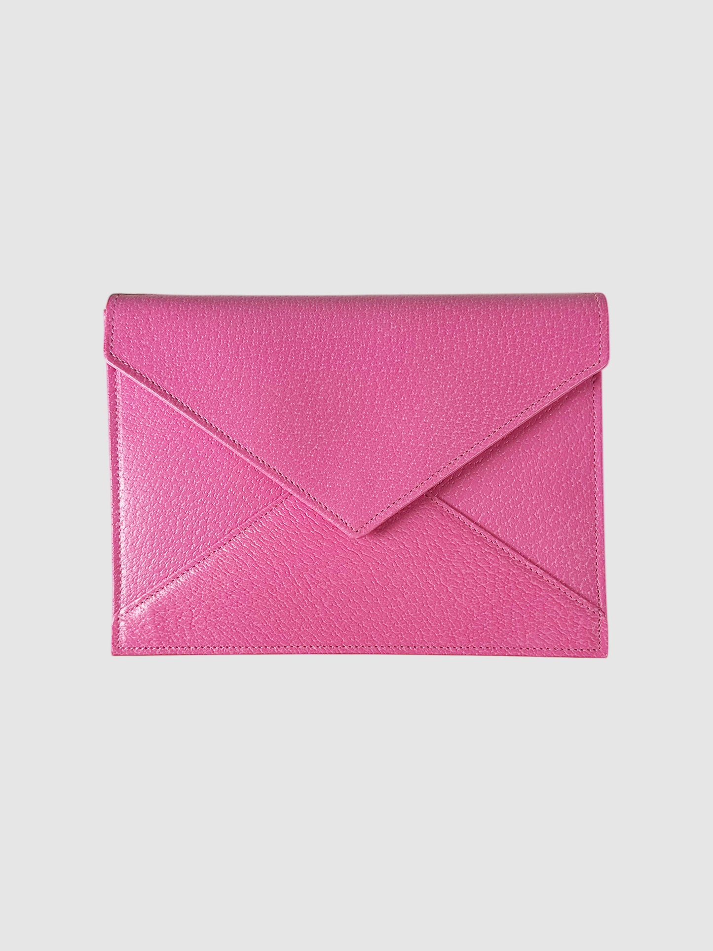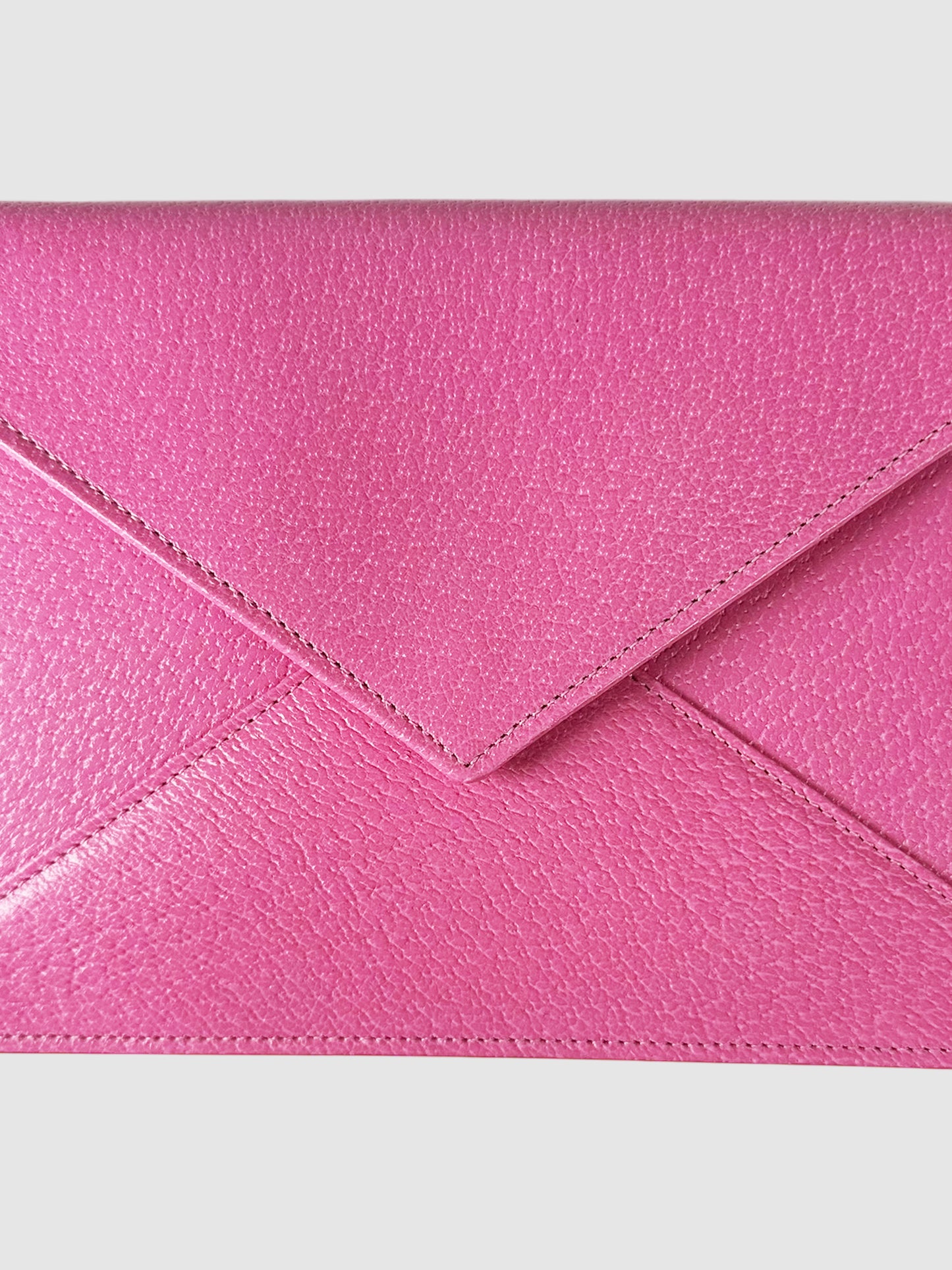 Smythson of Bond Street Pink Leather Large Envelope Wallet.