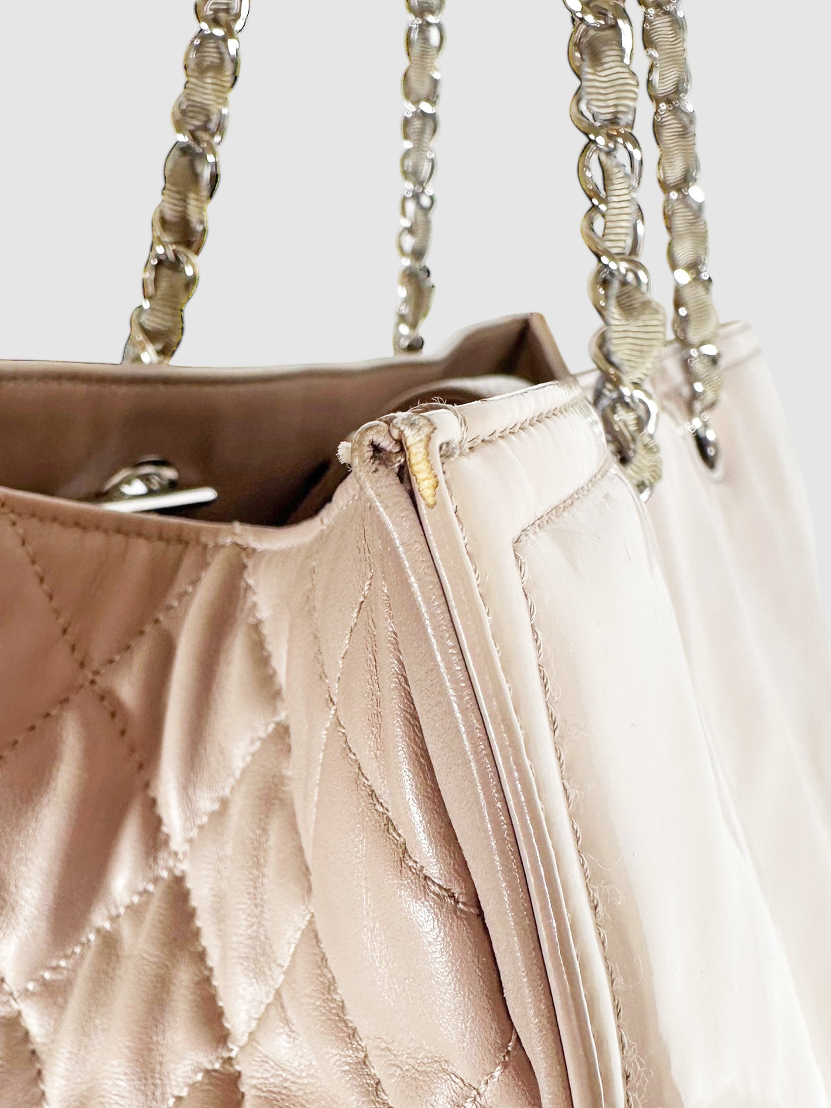 Chanel Dusty Rose Patent Leather Lipstick Open Tote Bag.