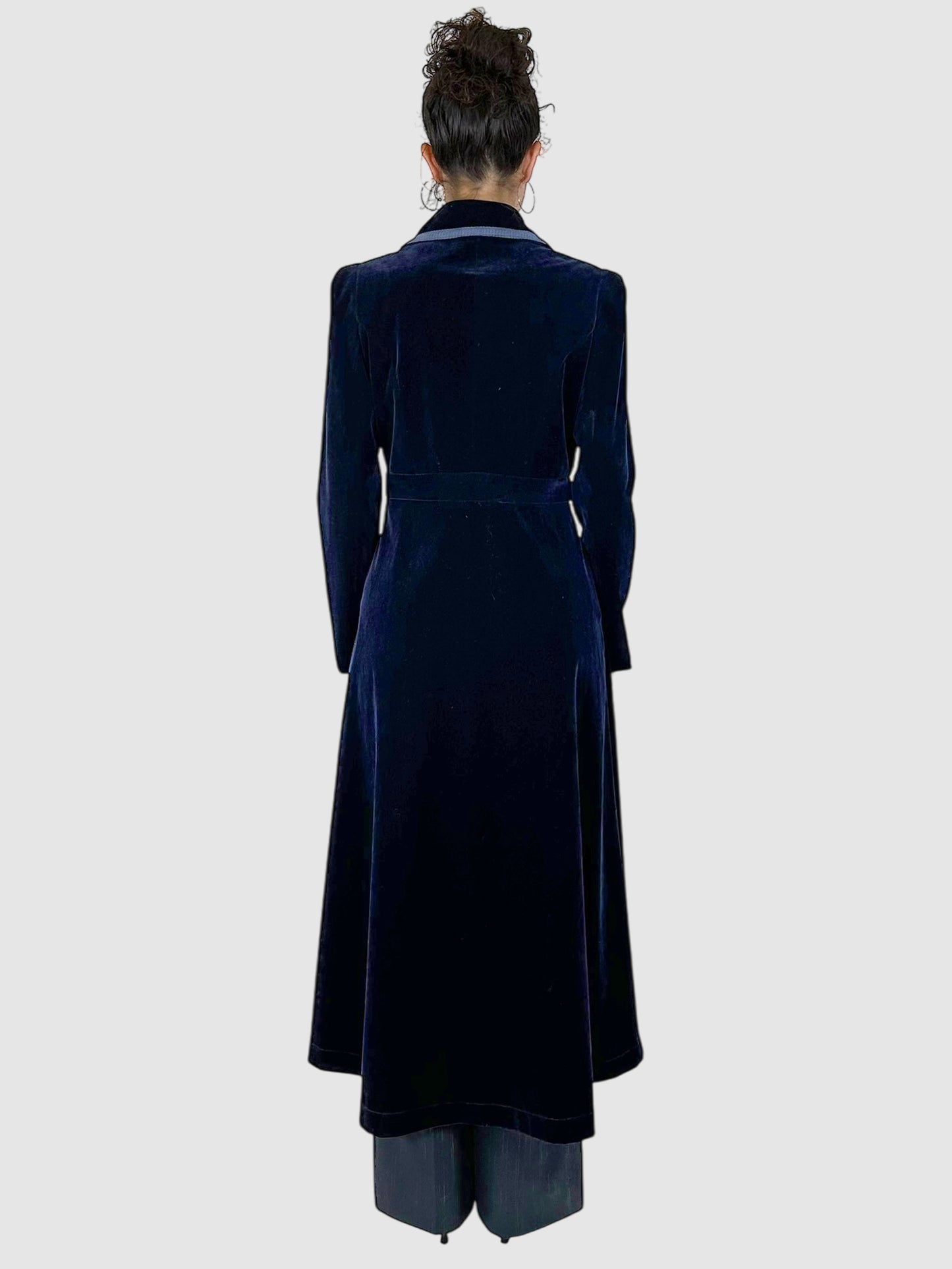 Feiinvan Dark Blue Long Collared Evening Coat - Size Extra Extra Large.
