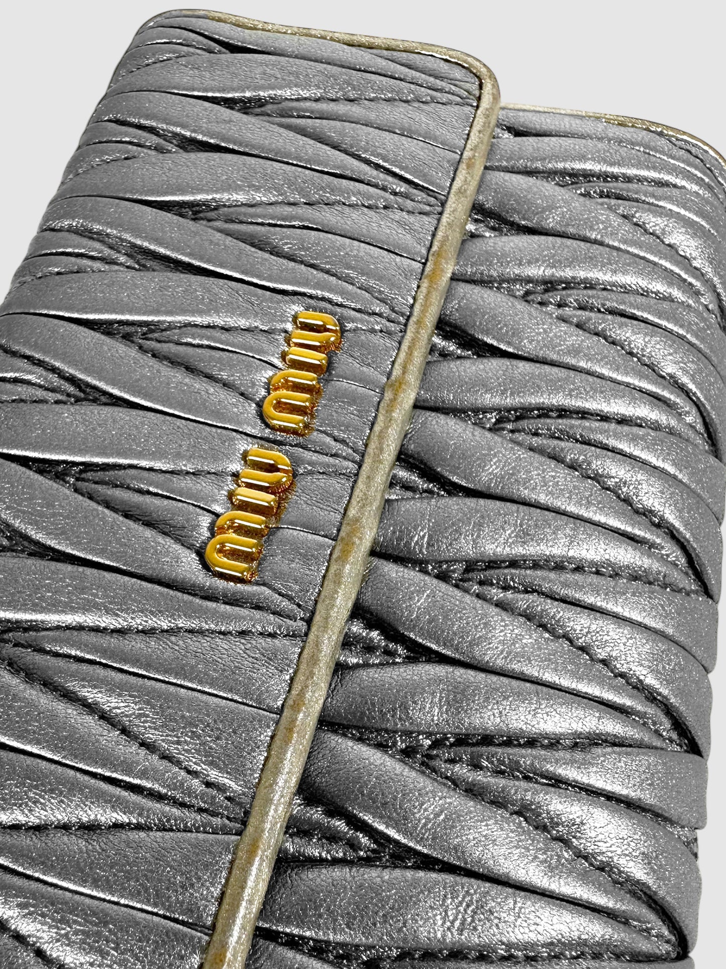 Miu Miu Silver Matelassé Leather Flap Wallet.