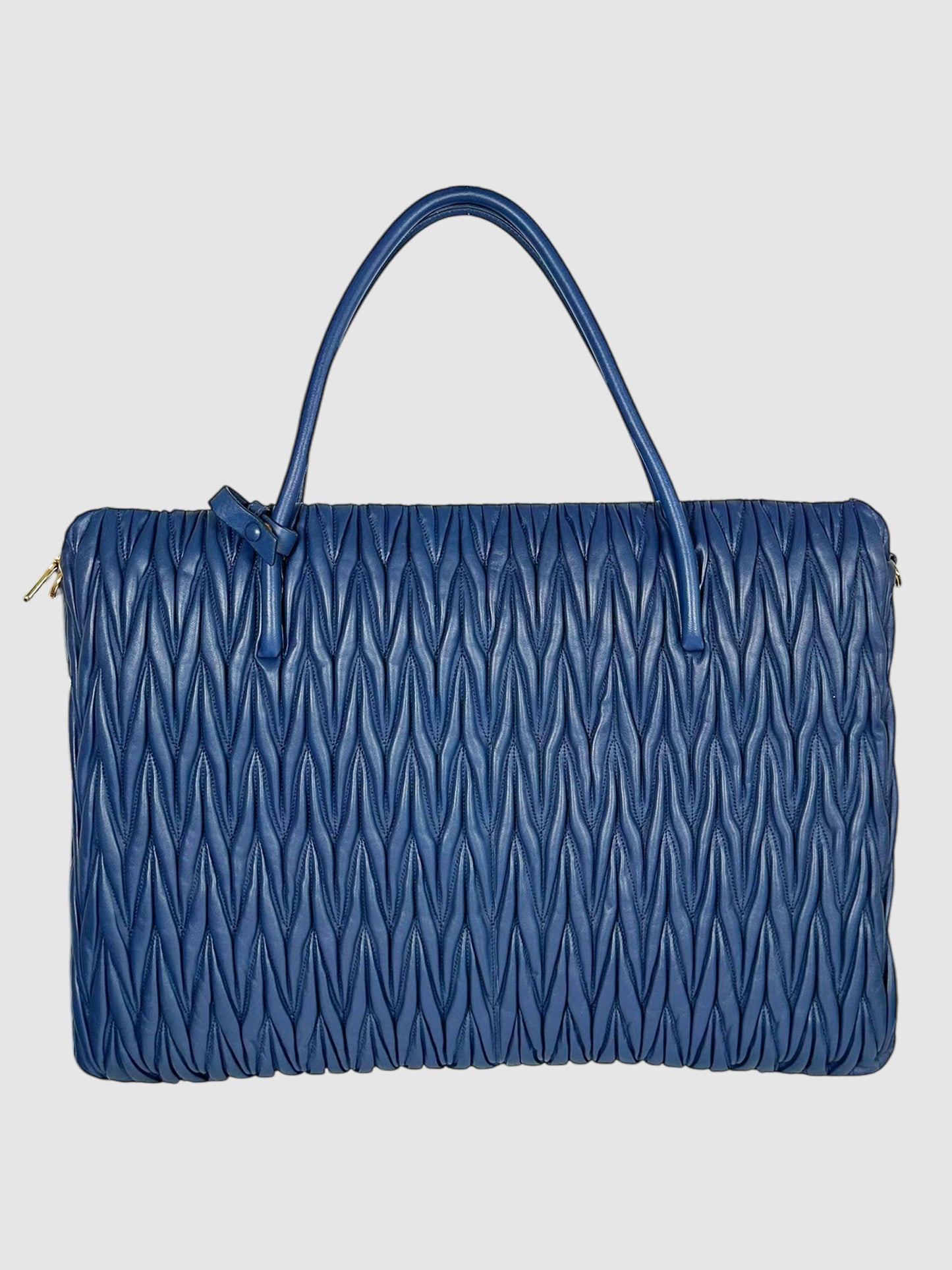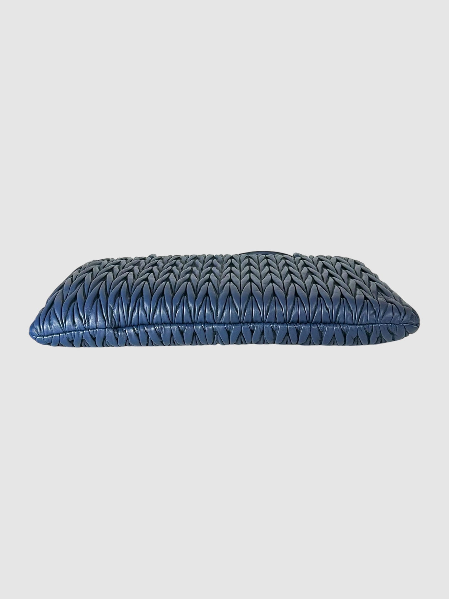 Miu Miu Blue Large Matelassé Lambskin Leather Bag.