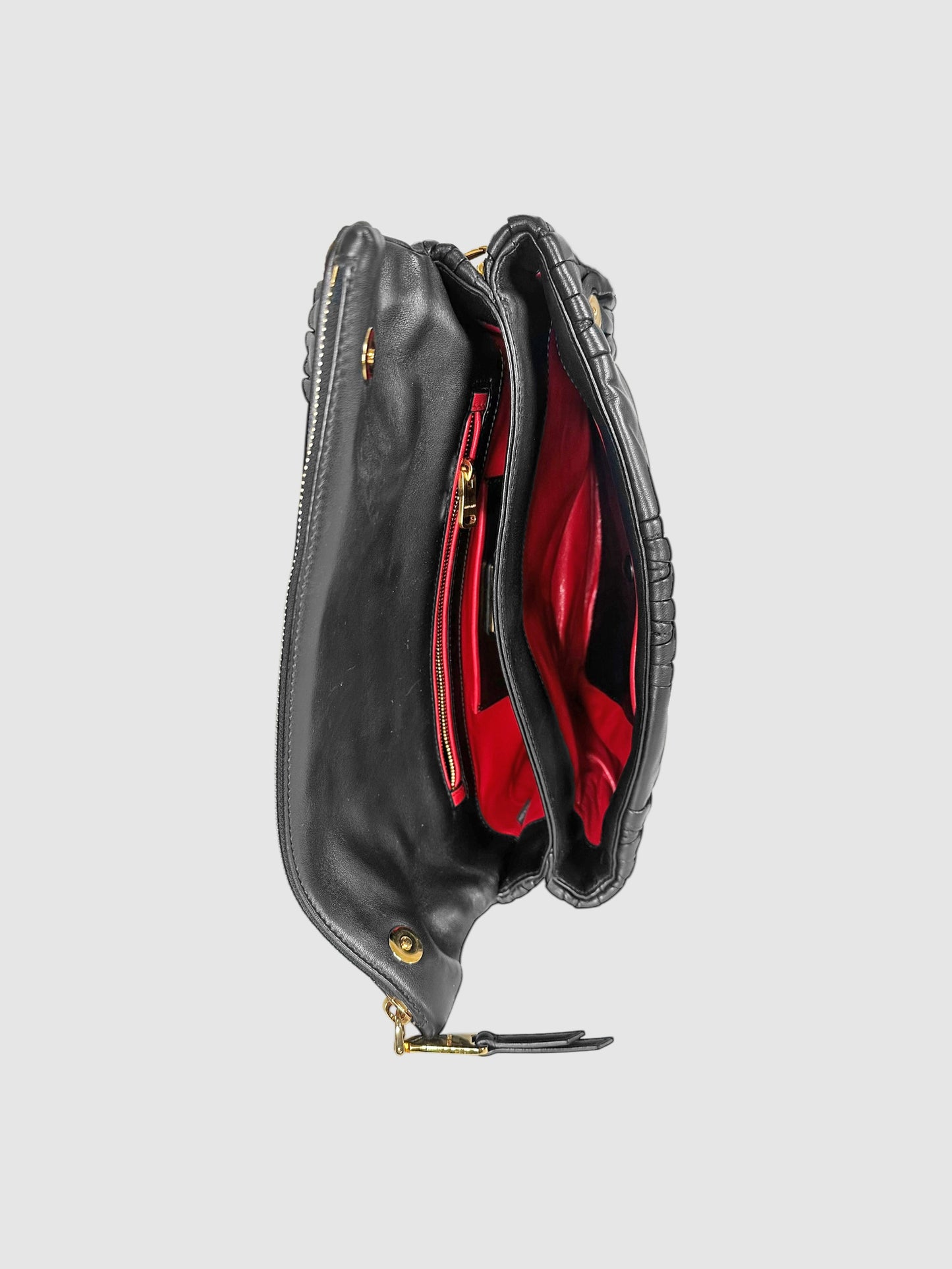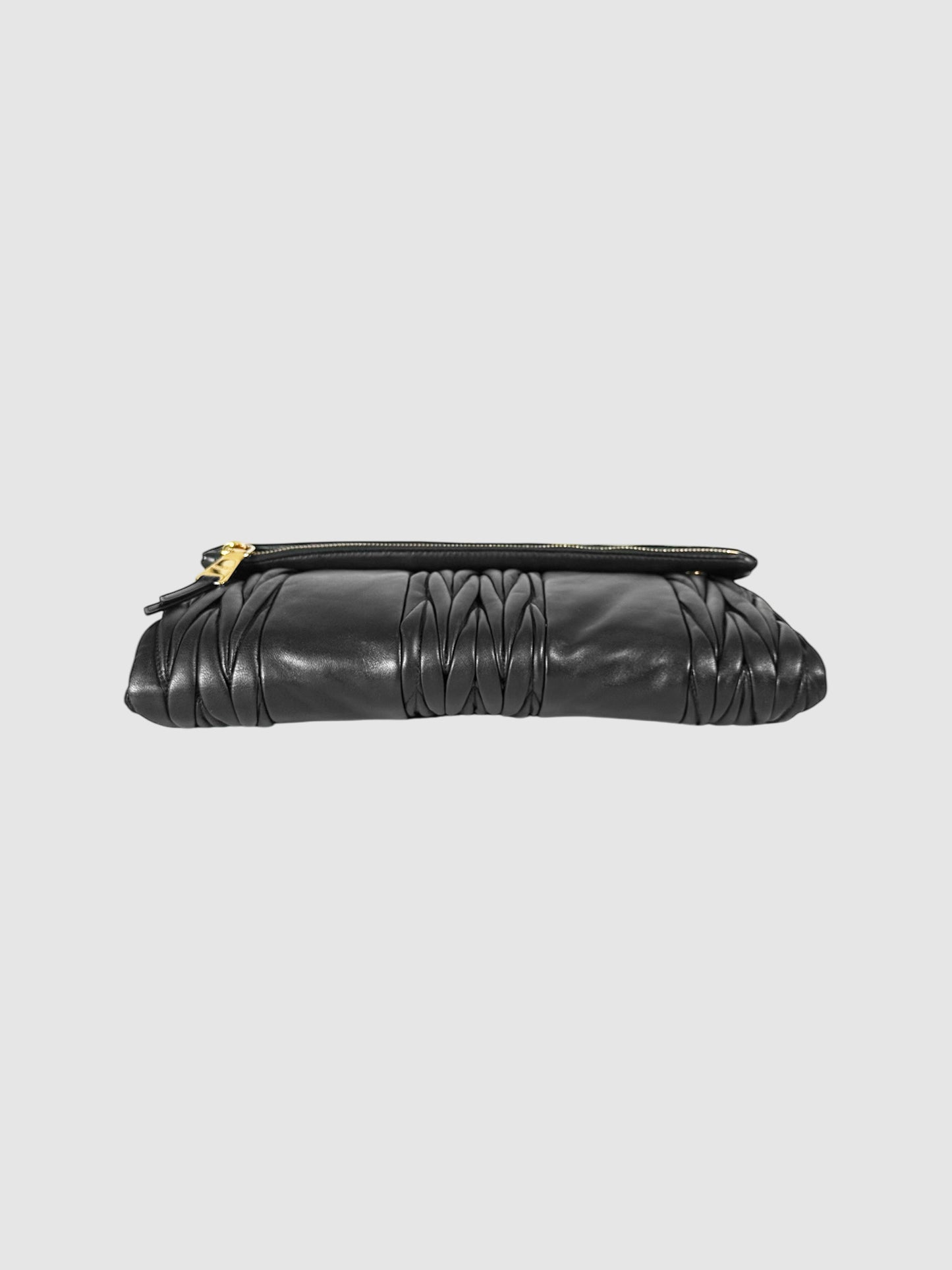 Miu Miu Black Matelassé Nappa Leather Patch Pochette Clutch.