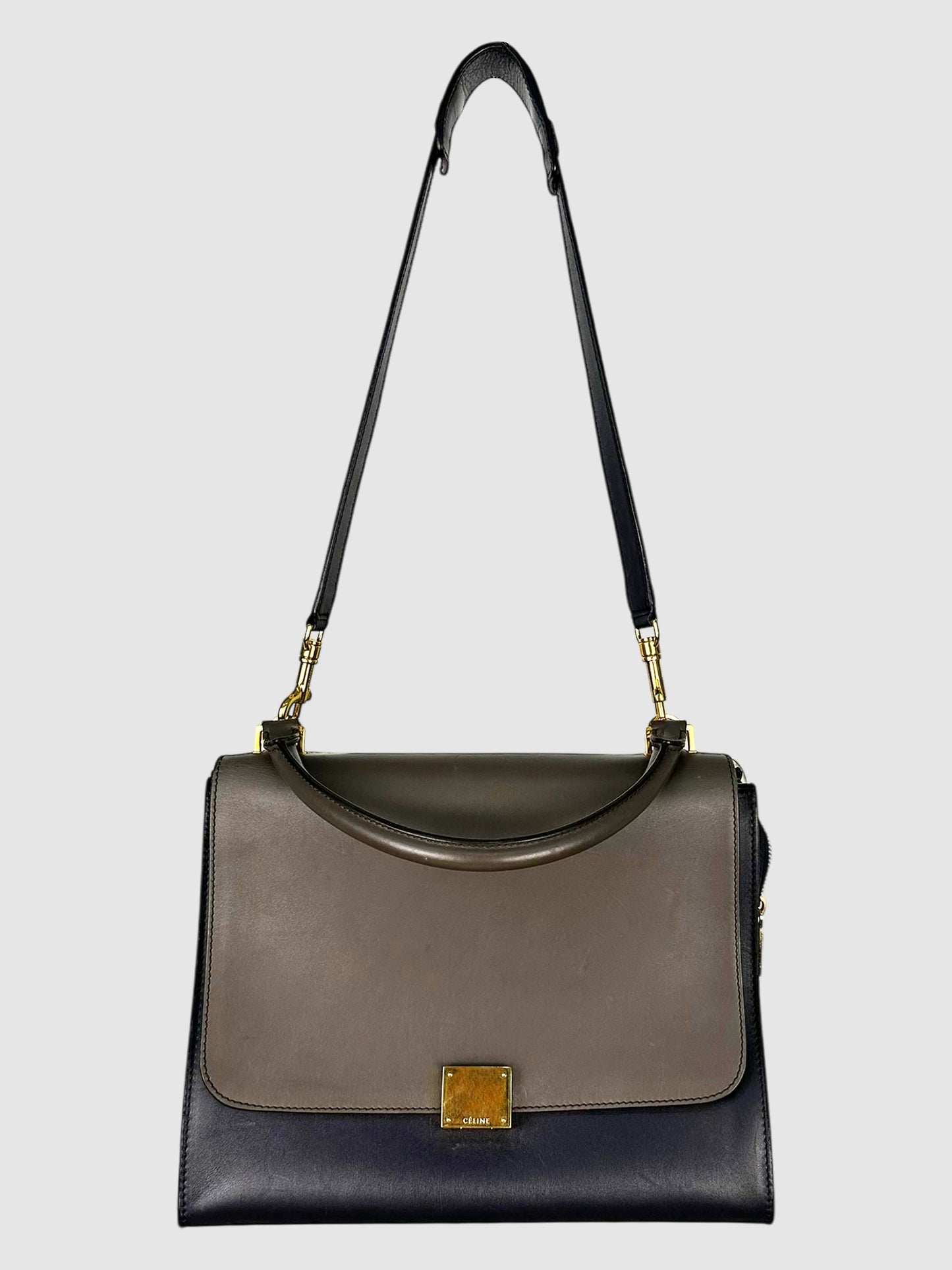 Celine Navy Blue and Taupe Leather Medium Trapeze Bag.