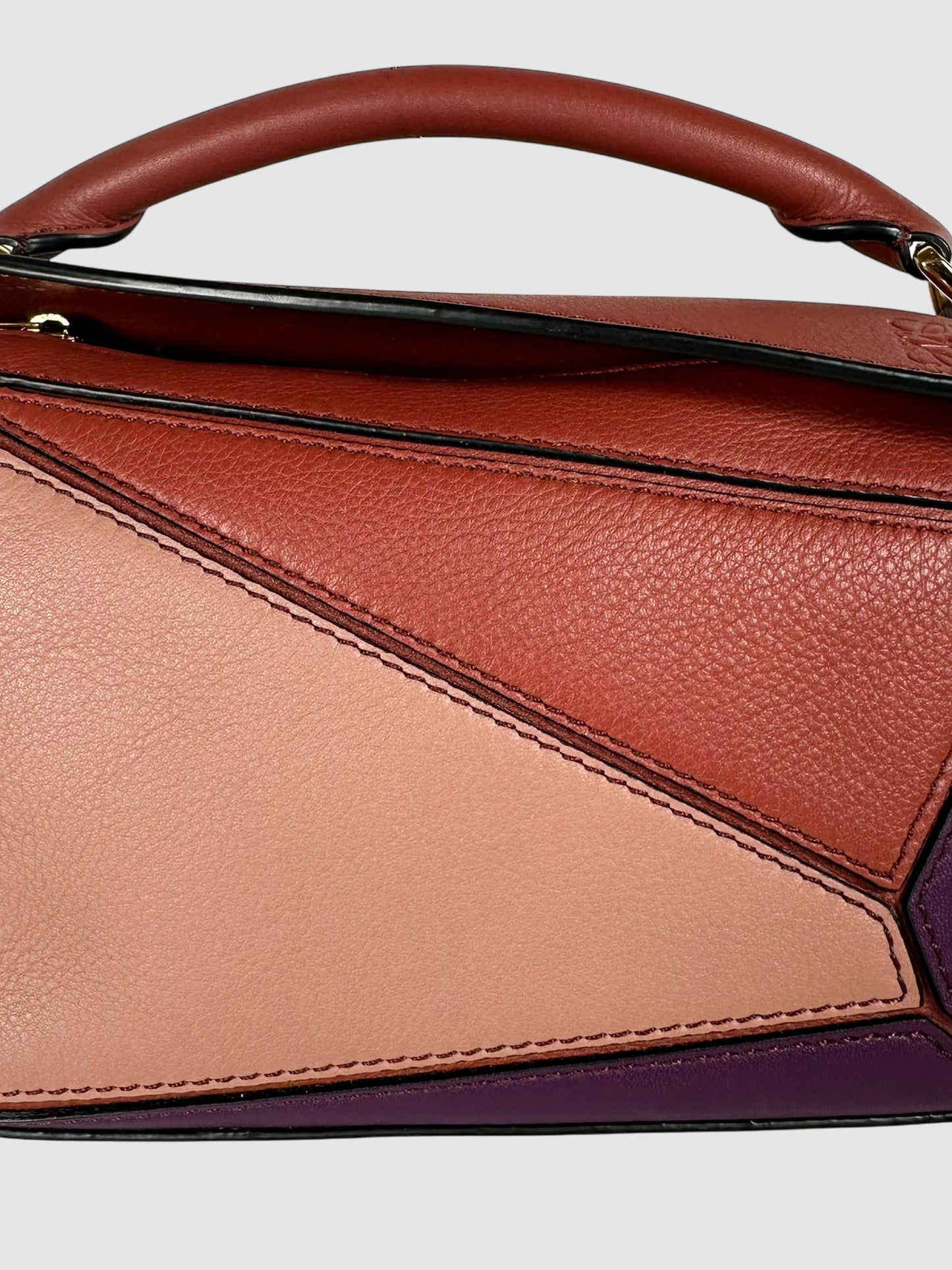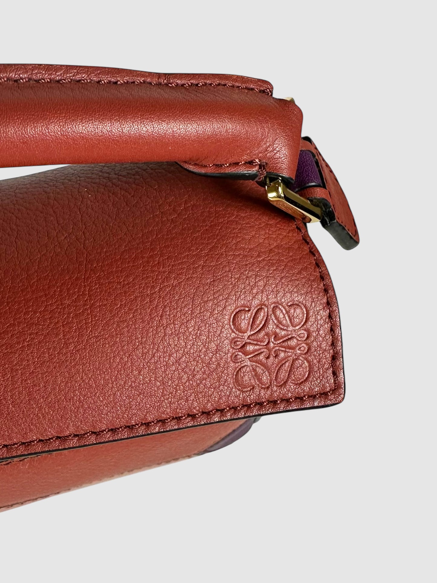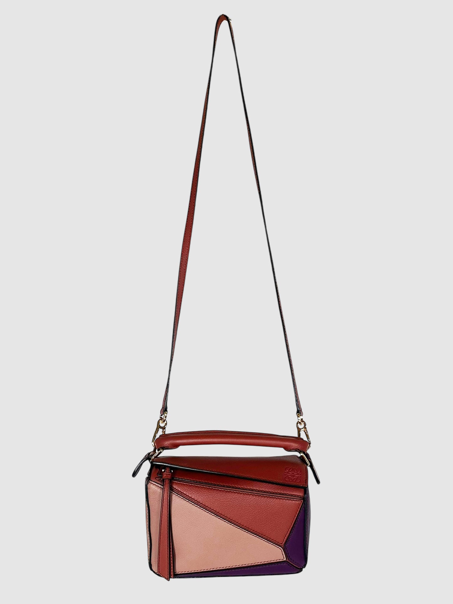 Loewe Red, Pink, and Purple Leather Mini Puzzle Bag.