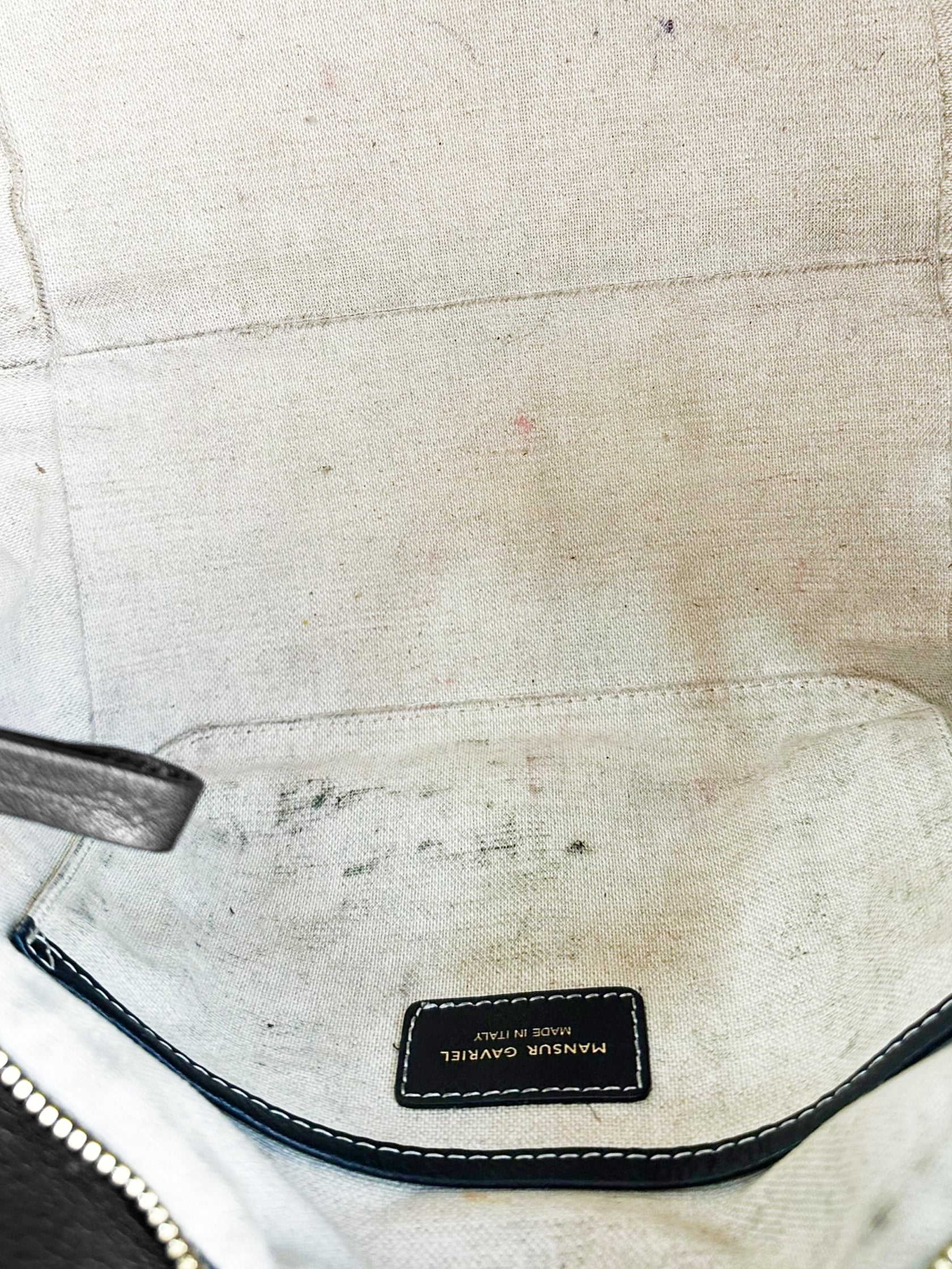 Mansur Gavriel Black and Cream Leather Mini Tulipano Top Handle Bag.