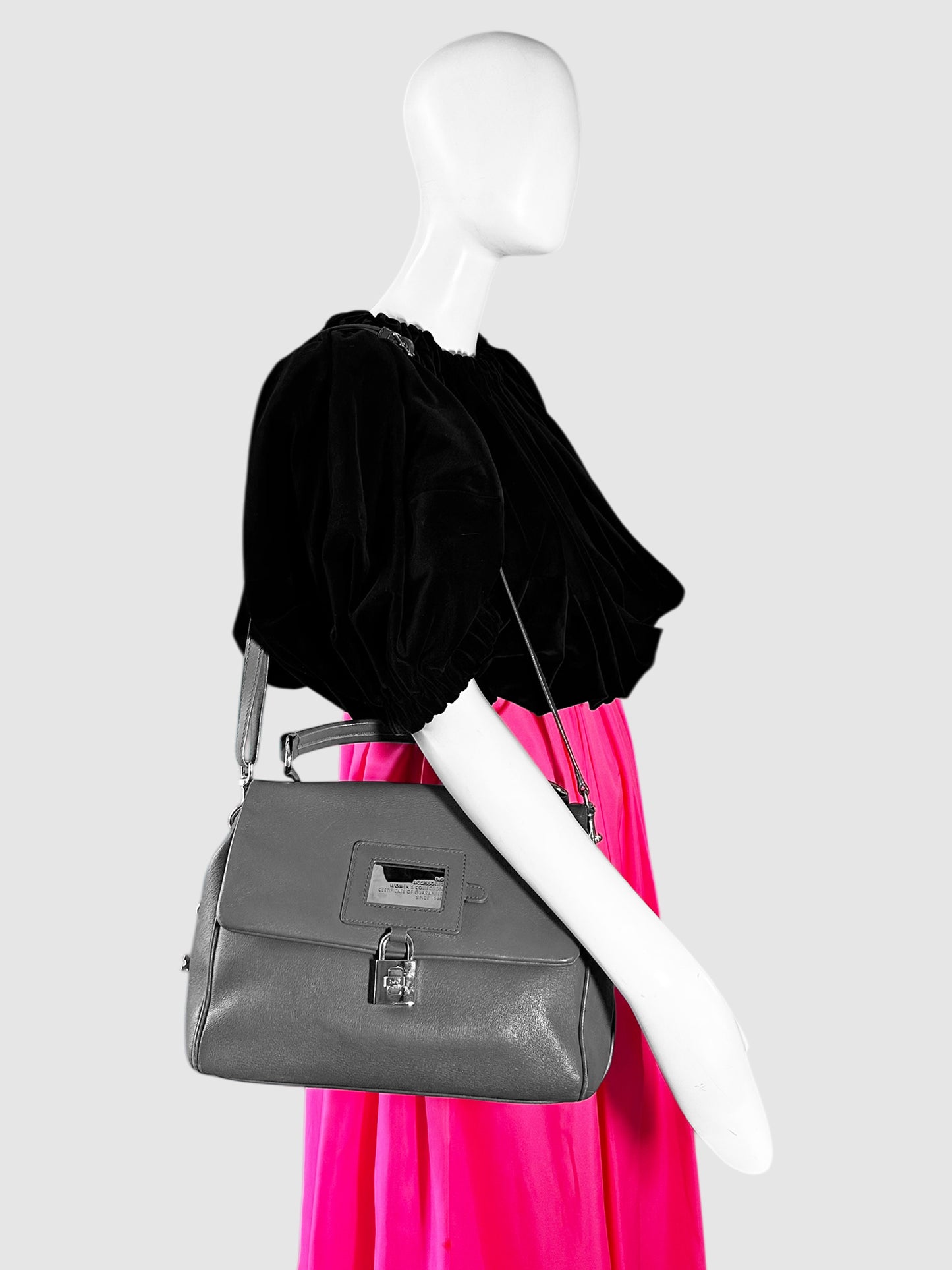Dolce & Gabbana Charcoal Grey Leather Miss Dolce Padlock Bag.