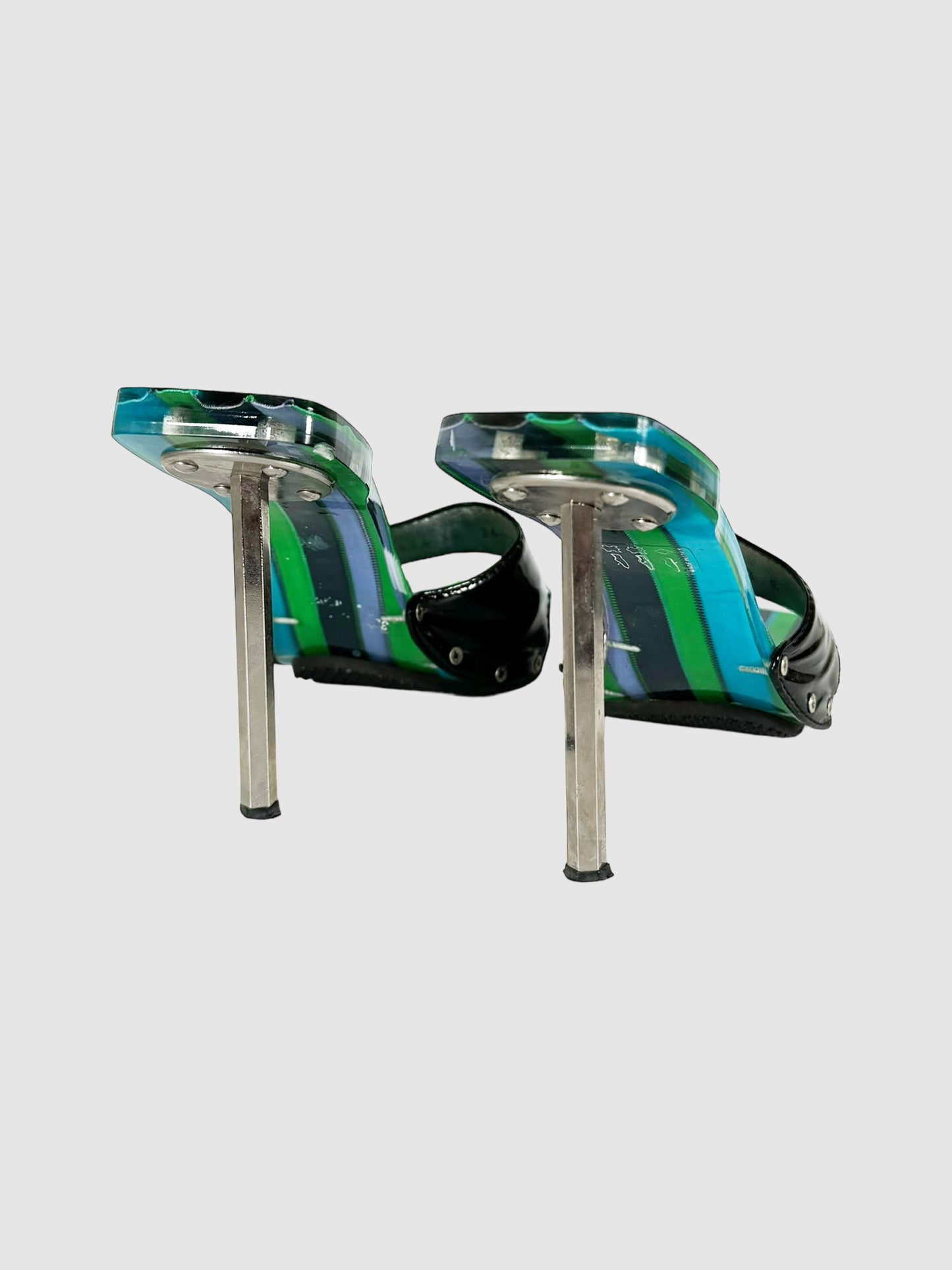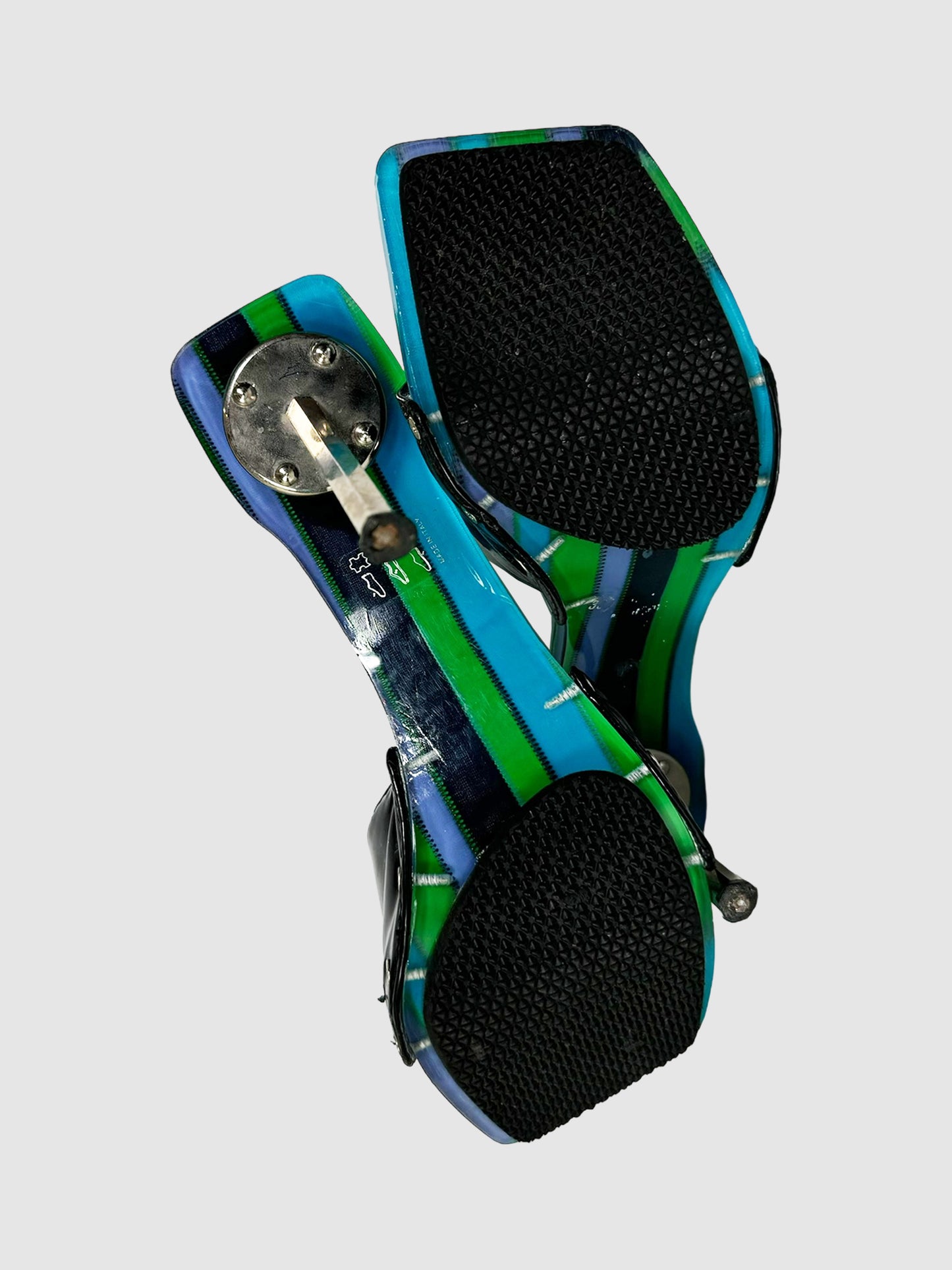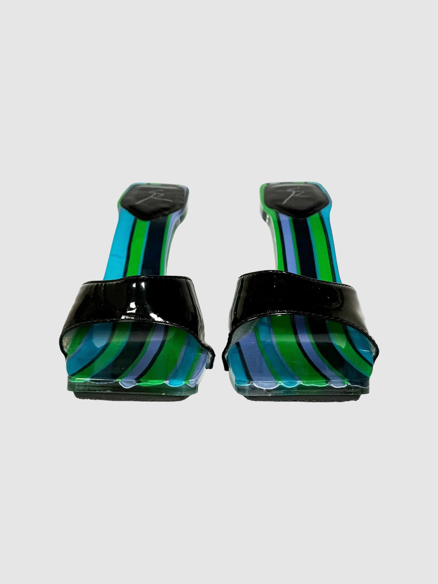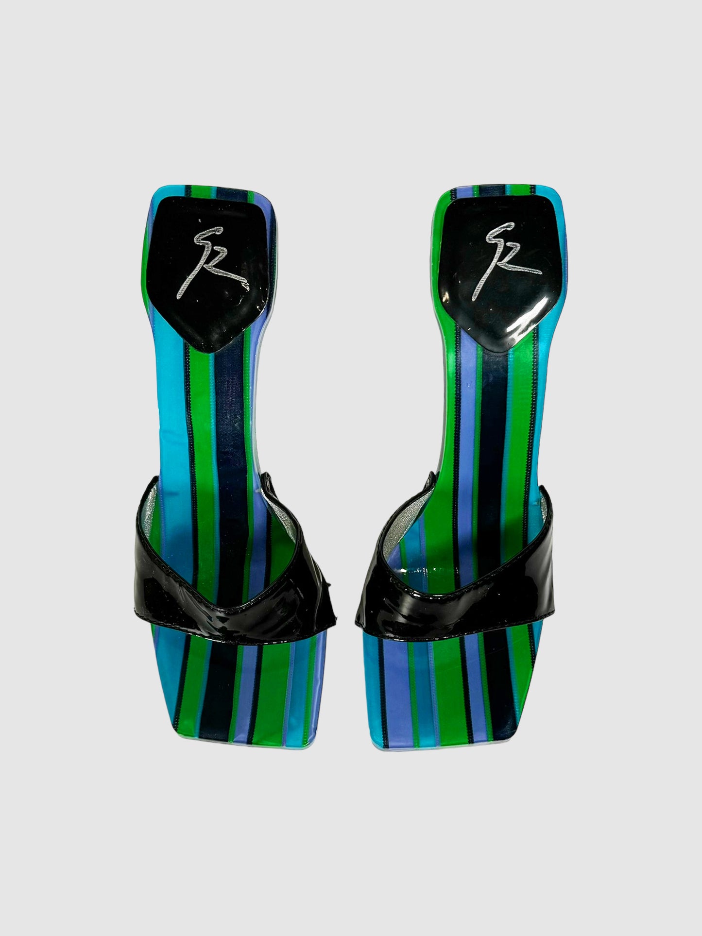 Giuseppe Zanotti Black Patent Leather Slip-On Sandal Heels, Size 38.
