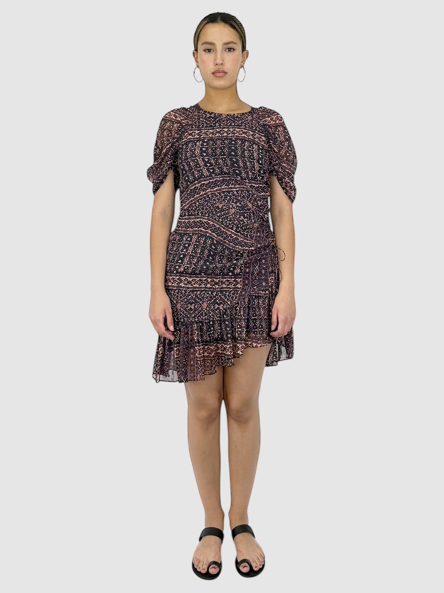 Ulla Johnson Multicolour Silk Patterned Aicha Short Sleeve Midi Dress - Size 8.