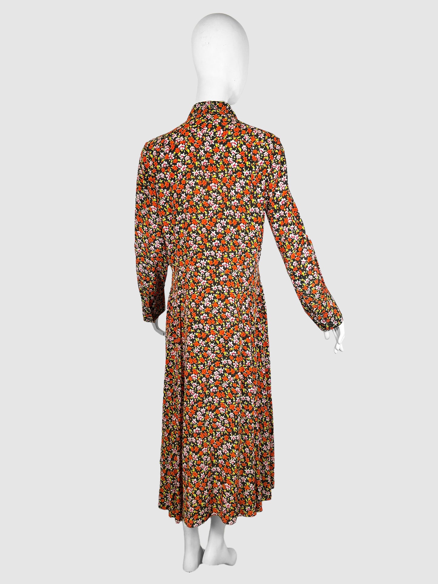 Paul Smith Multicolour Floral Print Silk Button-Up Long Sleeve Maxi Dress, Size 42.