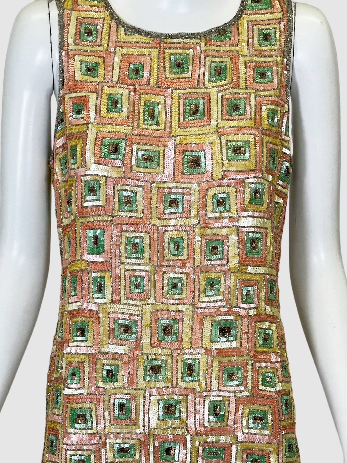Pink Tartan Sequin Sleeveless Dress, Size 4.