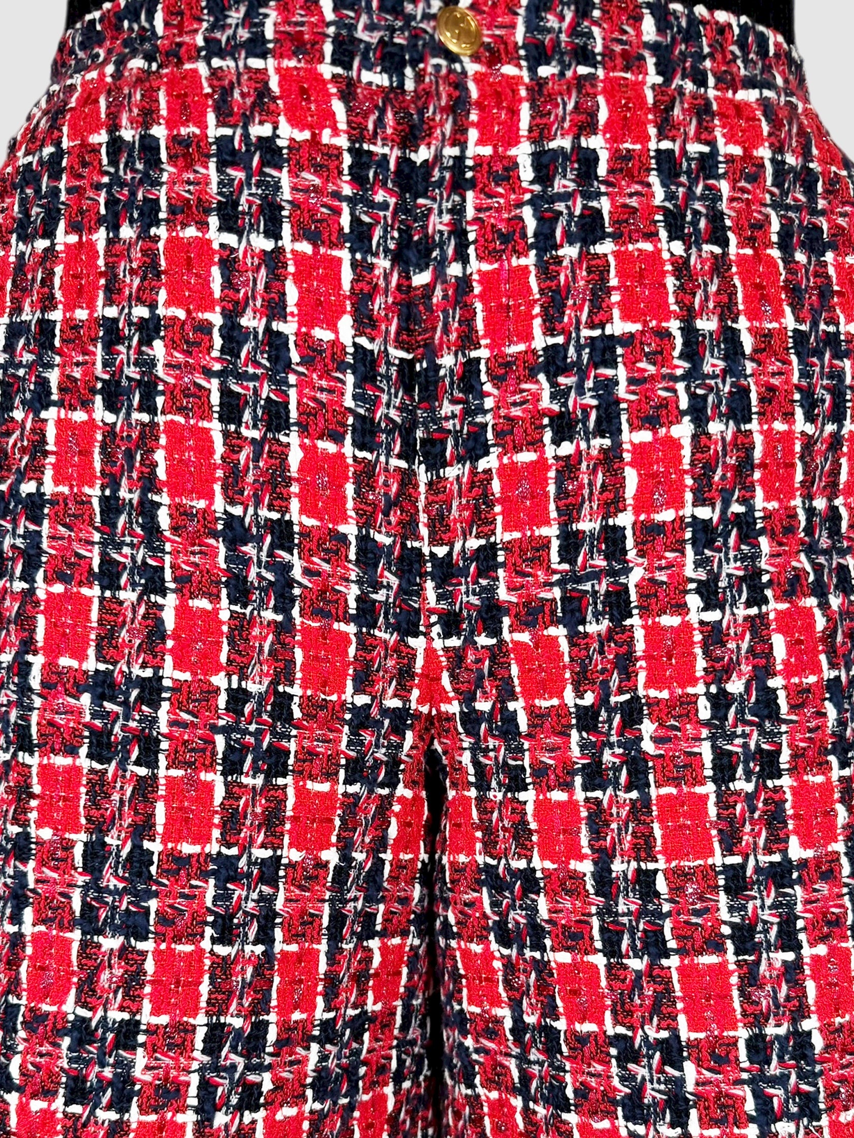 Gucci Red, Blue, and White Tweed Plaid High Rise Shorts- Size IT 38.