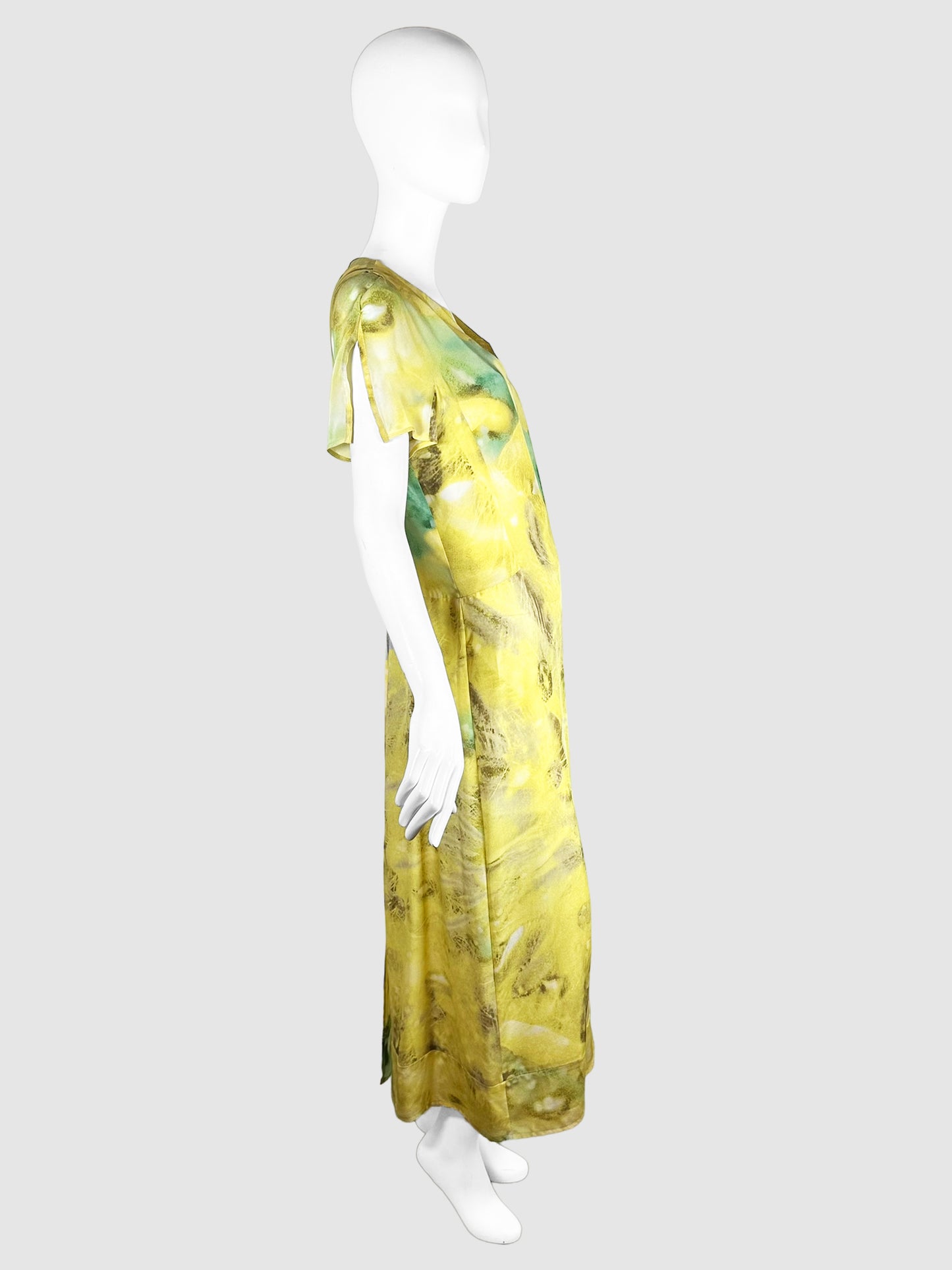 Ports Green and Yellow Printed Short-Sleeve Maxi Dress - Size Small.