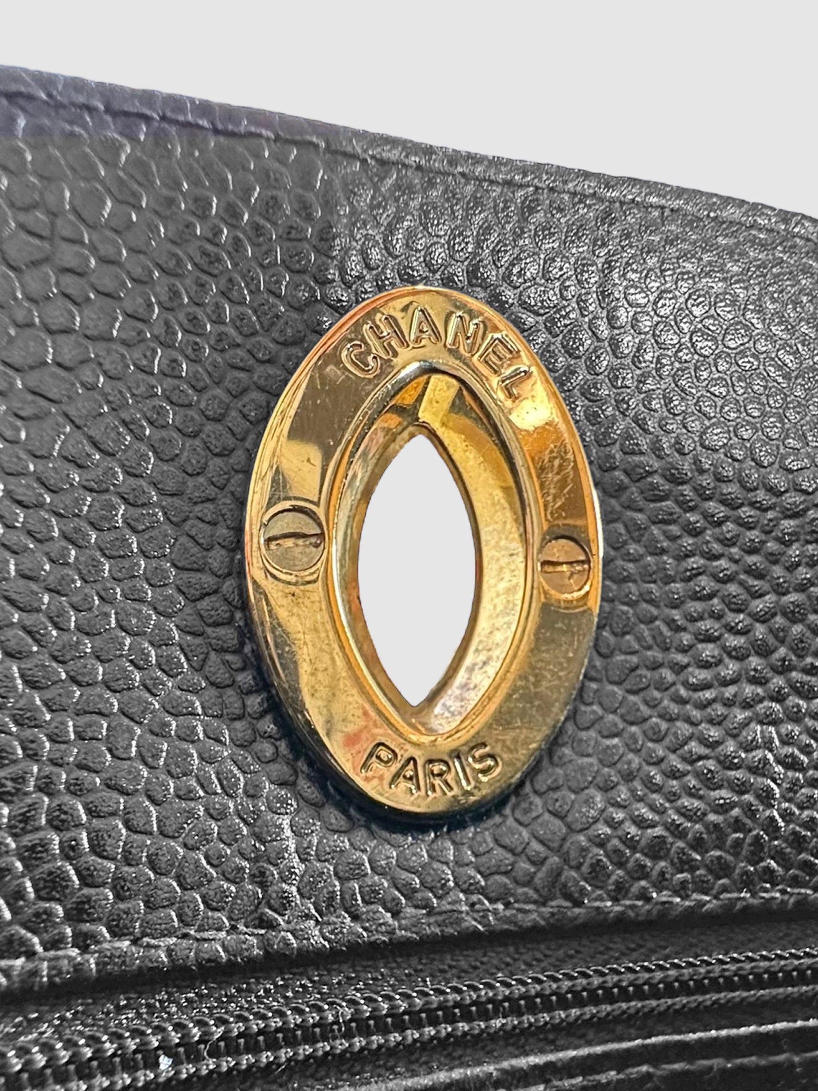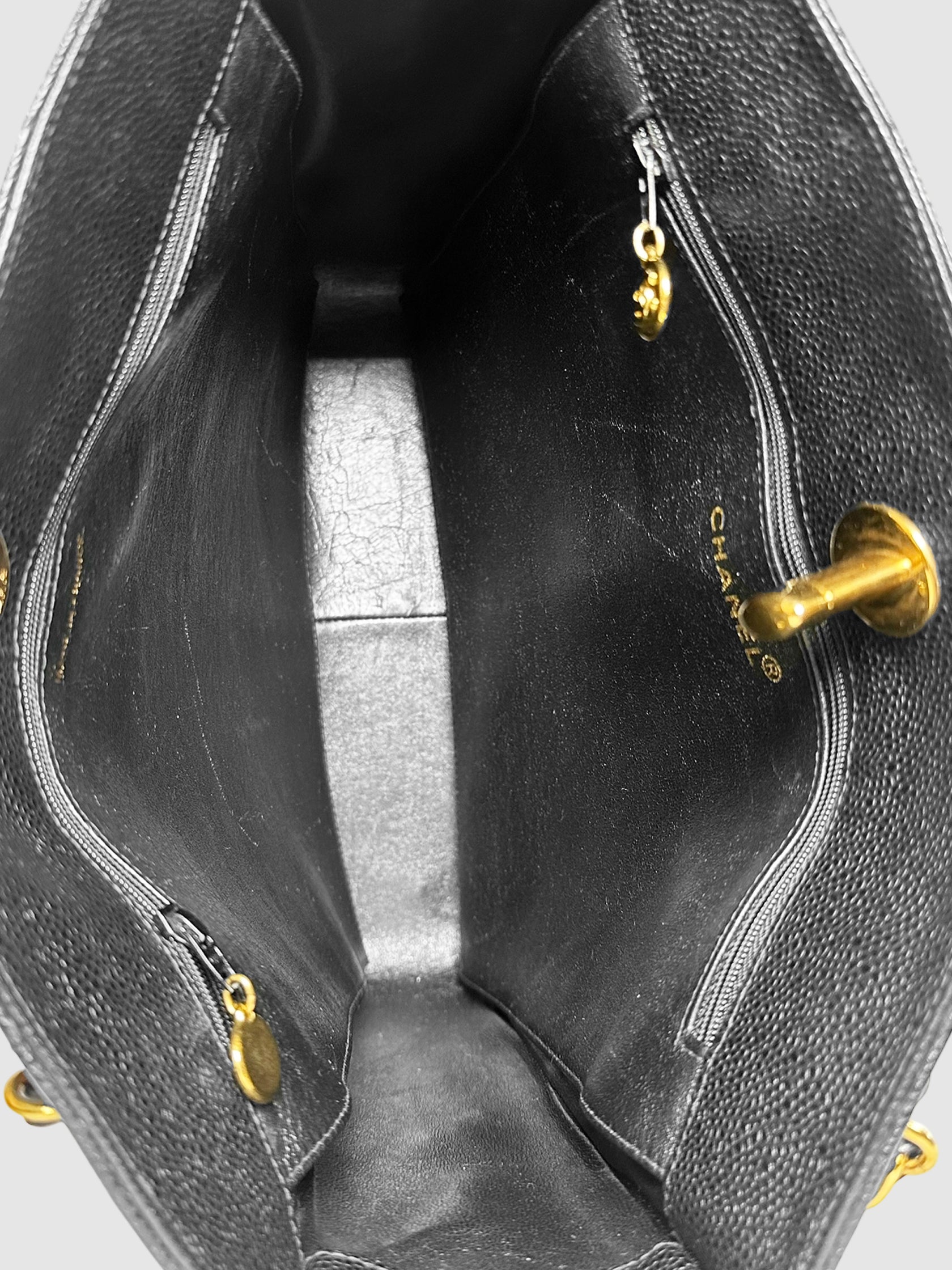 Chanel 2019-2020 Black Quilted Caviar Leather Tote Bag.