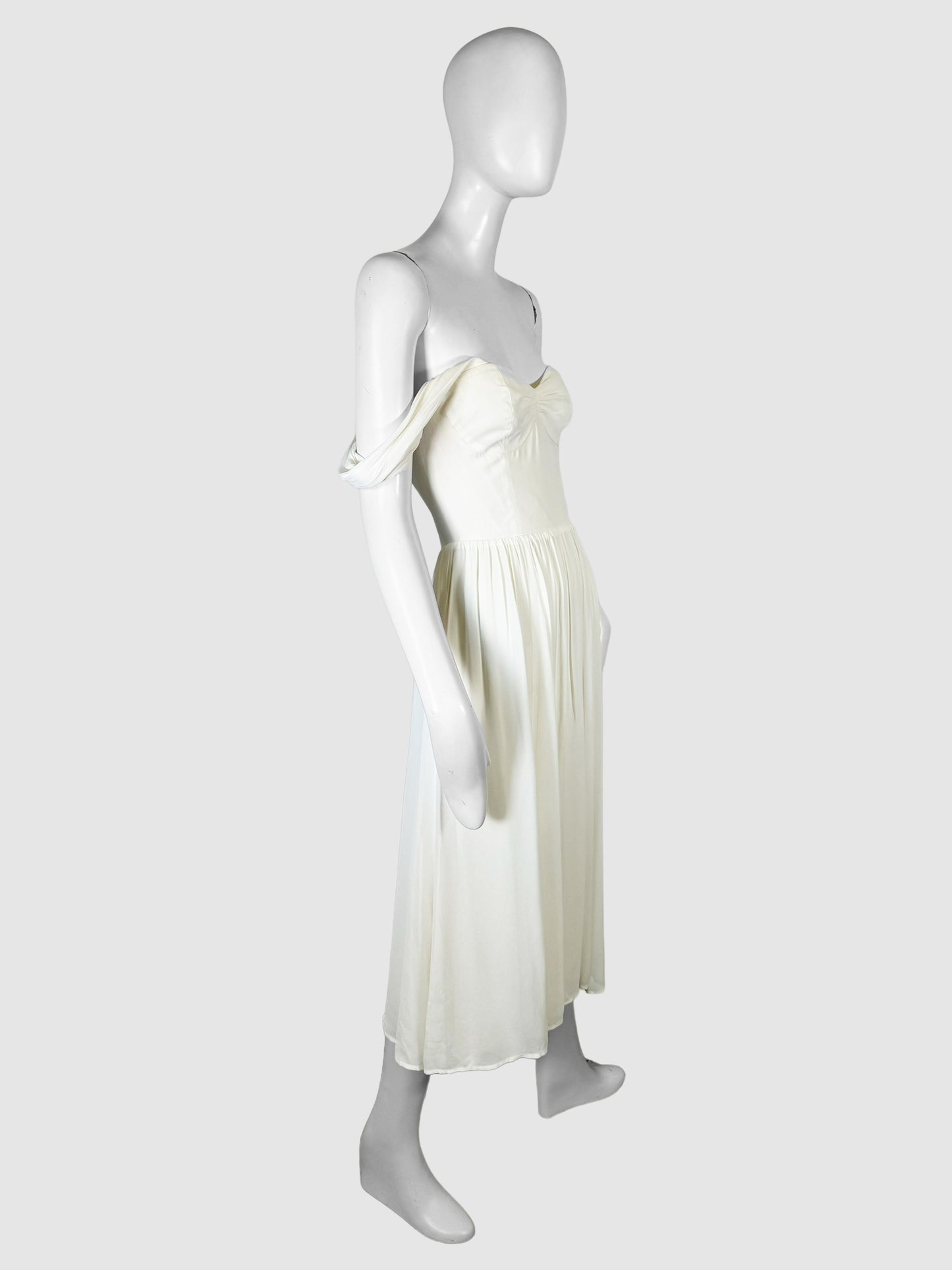 Reformation White Ruched Off-the-Shoulder 'VIOLET' Dress - Size 2.