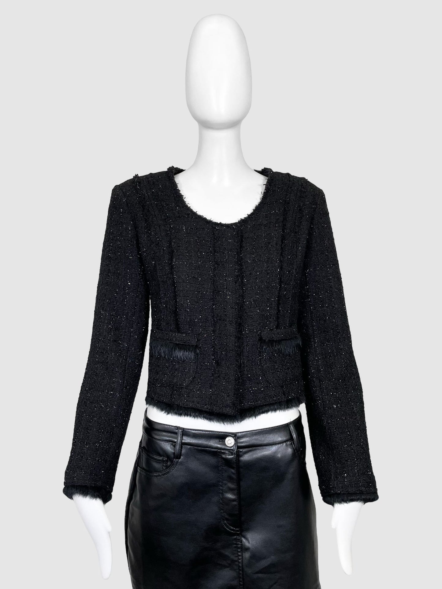 Seventy Black Tweed Faux Fur Trim Jacket, Size 44.