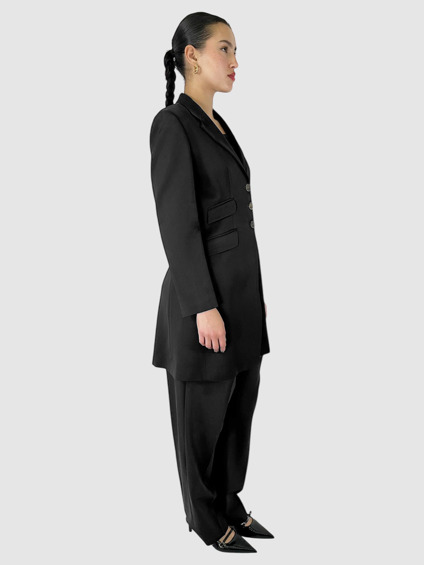 TBA Black Single-Breasted Long Blazer - Size 40.
