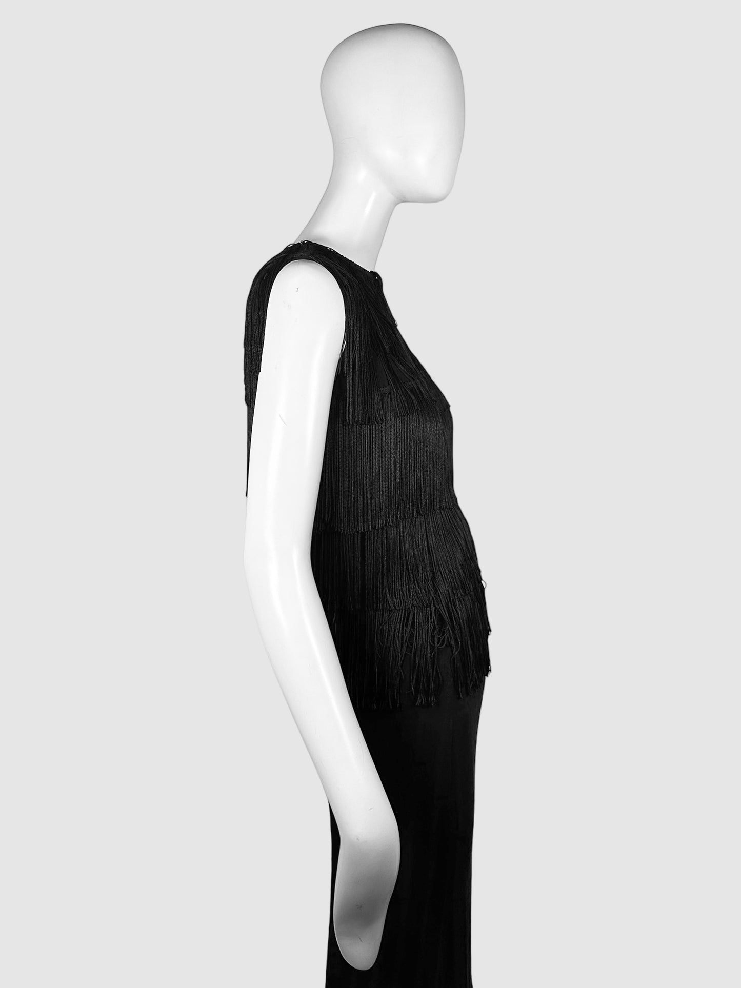Norma Kamali Black Fringe Sleeveless Top - Size Small.