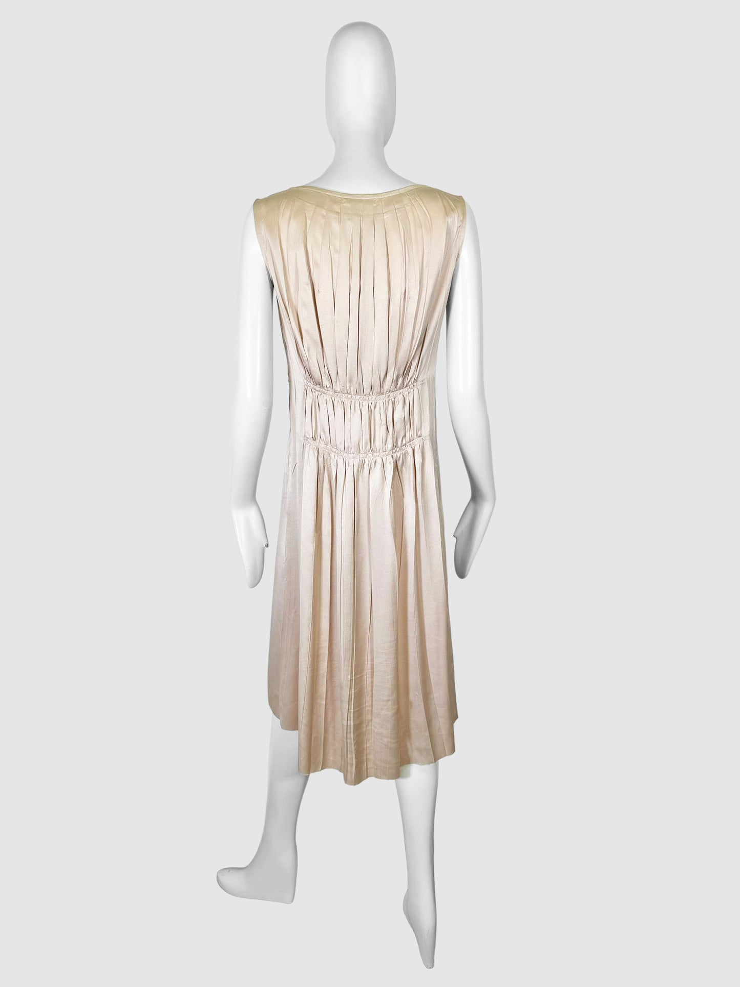 Issey Miyake Light Pink Sleeveless Ruched Dress - Size 3.