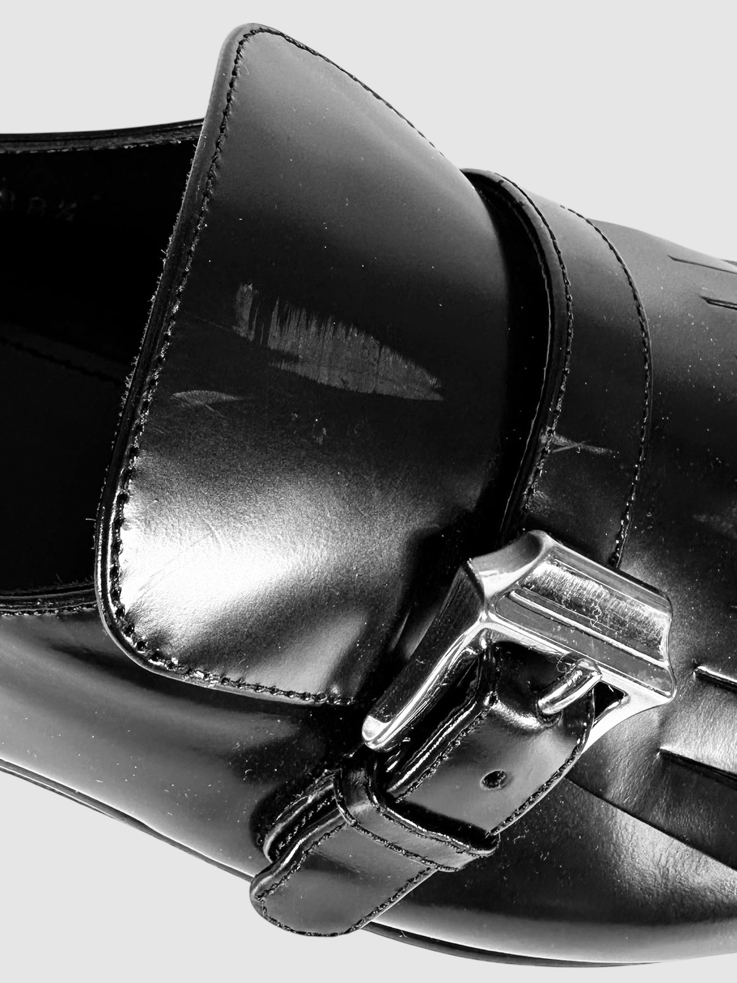 Prada Black Patent Leather Spazzolato Platform Oxford Shoes.